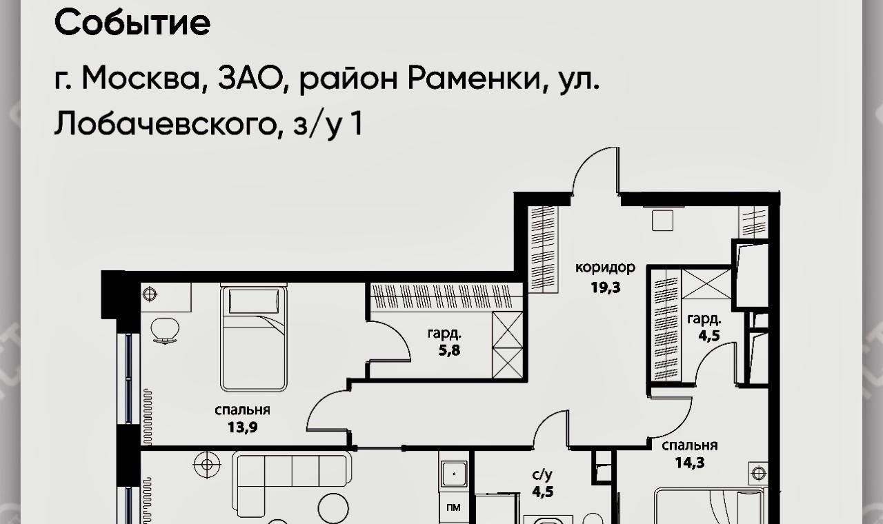 Продается видовая 2-х комнатная квартира на 24 этаже, с панорамным видом на событийную площадь, каток и фонтаны, а также на Олимпийскую деревню, Мичуринский проспект, и улицу Лобачевского. Площадь квартиры 88,5 кв2, в премиальном ЖК Событие 5 по улице Василия Ланового 7с2 .
