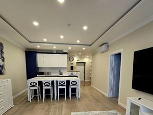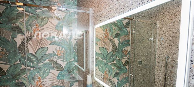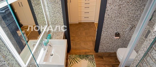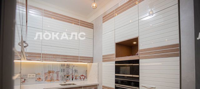 Квартира выполнена по дизайн проекту с использованием в отделке премиальных материалов : пол наборный дубовый паркет со вставками из латуни/ керамогранит; межкомнатные двери не стандартной высоты выполненные на заказ, обои Cole&Son, плитка Porcelanita Dos. Установлены система анти протечки, кондиционирования. Квартира оборудована: стиральной, сушильной , посудомоечной машинами, утилизатором мусора, фильтром воды, бойлером, встроенными духовым шкафом и СВЧ. Встроенная мебель: кухня, шкафы, - делались на заказ по эскизам дизайнера.