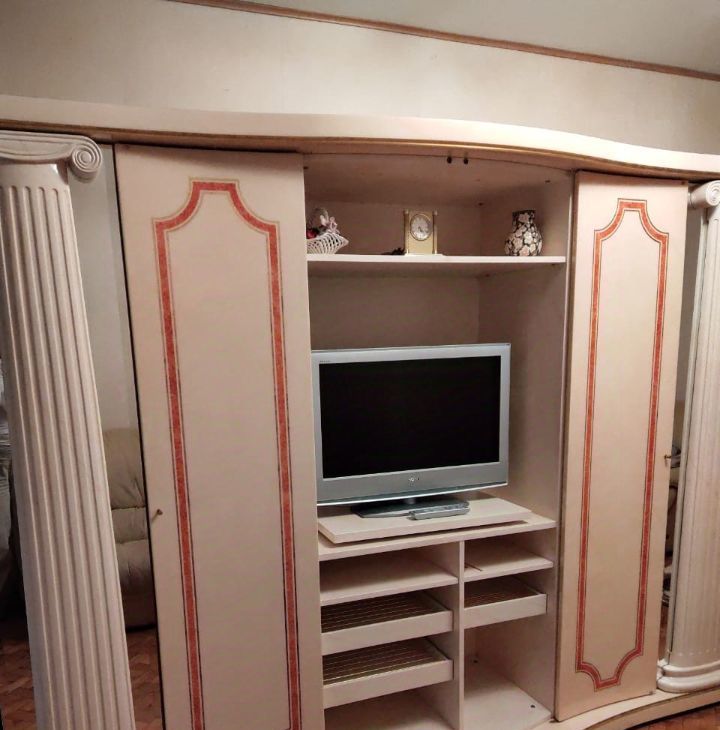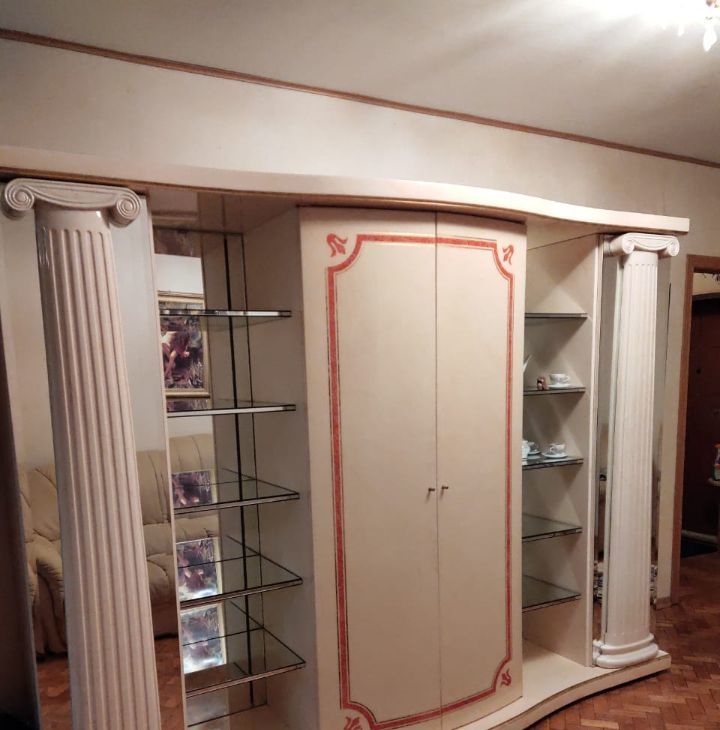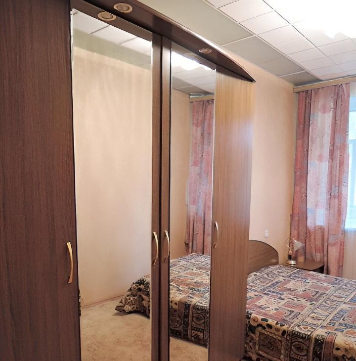 Комнаты изолированные. Двуспальная кровать, НОВЫЙ матрас, вместительный шкаф с зеркалами, комод; в гостиной французская мебель: витрина с отделениями для хранения, велюровые диван и кресло после химчистки, журнальный столик.