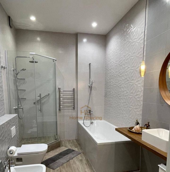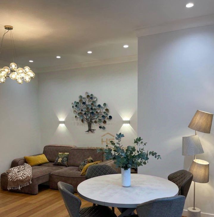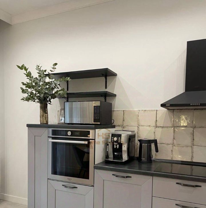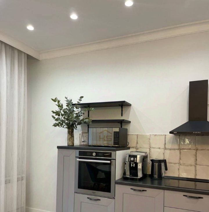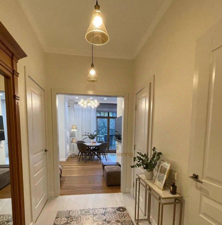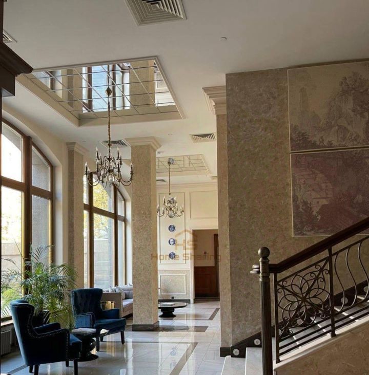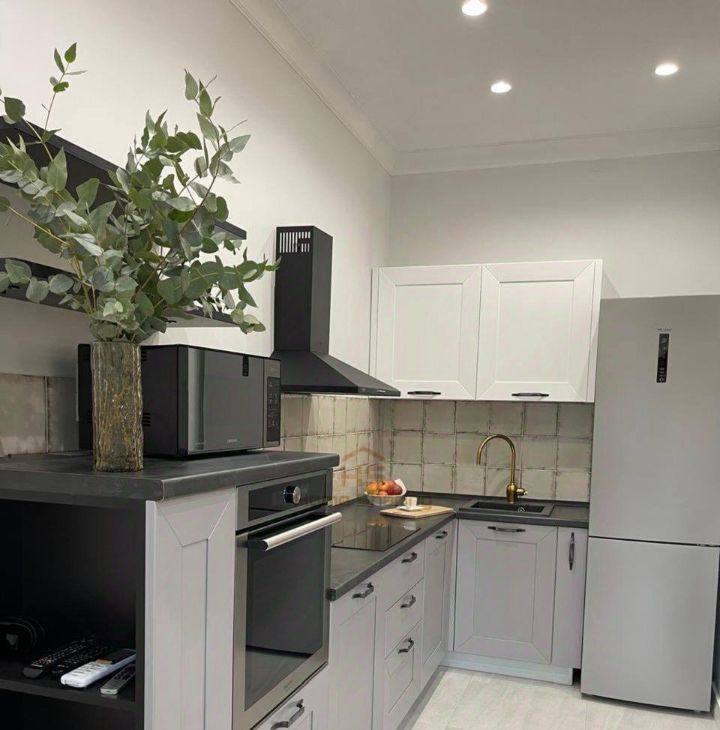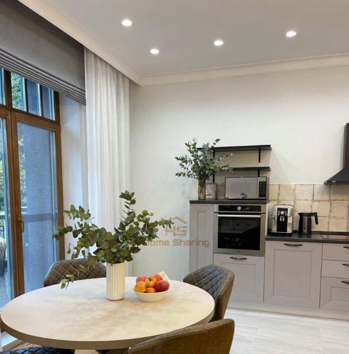 Интерьер полностью укомплектован премиальной мебелью и современной бытовой техникой.