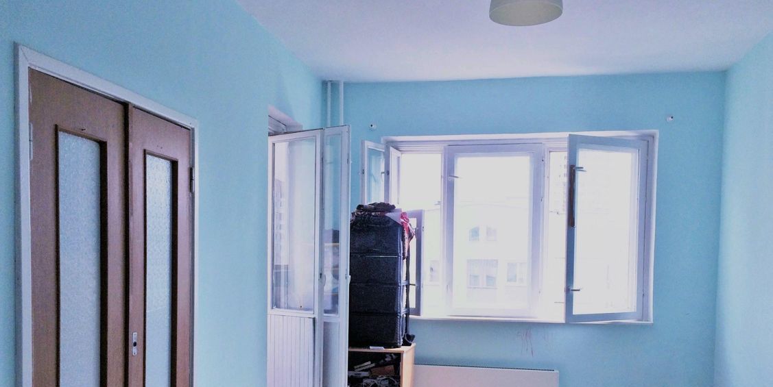 Две изолированные просторные комнаты правильной геометрической формы, в каждой комнате есть лоджия (застекленная) и выход на лоджию отдельно от большого окна, получается в каждой комнате два окна на двух смежных стенах. Высокие потолки ( 2,9 м) и большие окна визуально увеличивают помещение, не создавая ощущения запертости в тесном пространстве.