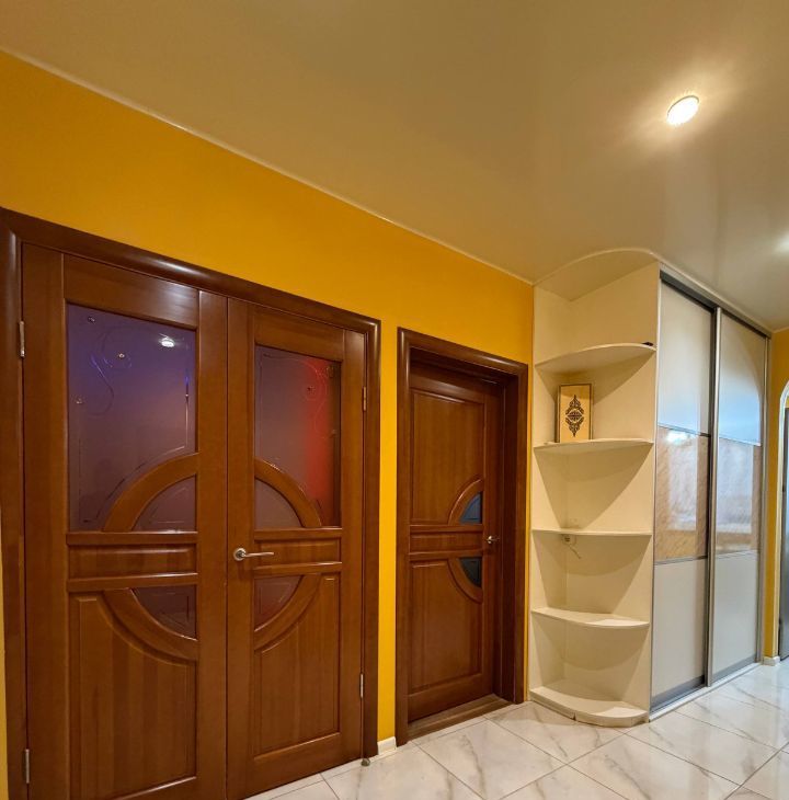 В гостиной установлен качественный проектор, моторизованный проекционный экран, встроена акустическая система. Ремонт делали для себя, все продумано, исправно и в хорошем состоянии. Балкон утеплен и оборудован под личный мини-бар, приятный вид из окна.