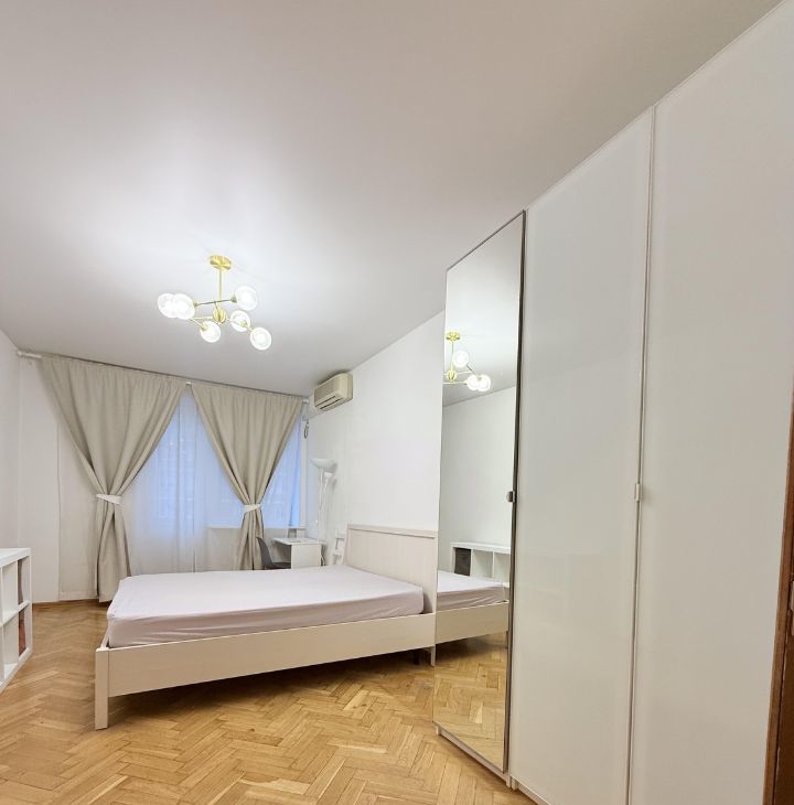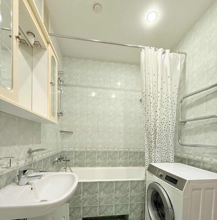 В квартире сделан косметический ремонт, что создает приятную атмосферу для жизни. В комнатах и на кухне есть необходимая мебель, поэтому можно сразу переезжать и чувствовать себя как дома. Из техники — кондиционер, холодильник и стиральная машина. Санузел совмещенный, оборудован ванной. Окна выходят во двор, что обеспечивает тишину и комфорт. В квартире два балкона, где можно наслаждаться свежим воздухом.