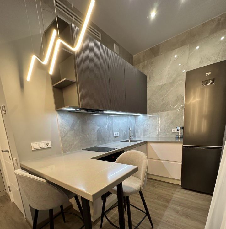 Дизайнерский ремонт.Кухня объединена с гостиной, спальня с гардеробом. Полная комплектация техникой(встроенная духовая печь, посудомоечная и стиральная машины, система климат-контроля), организованные системы хранения.Круглосуточная охрана и закрытый озелененный двор.