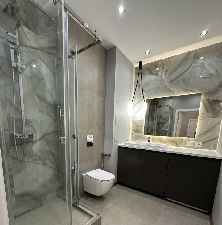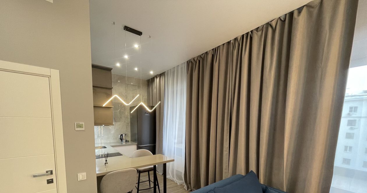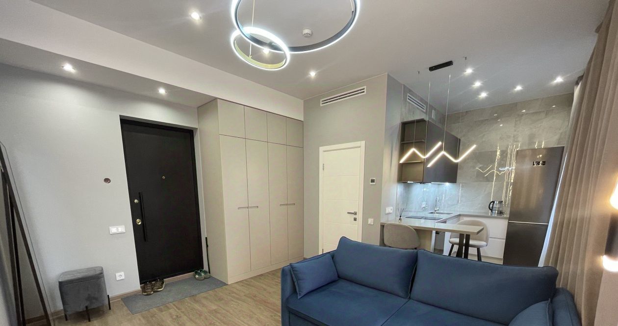 Дизайнерский ремонт.Кухня объединена с гостиной, спальня с гардеробом. Полная комплектация техникой(встроенная духовая печь, посудомоечная и стиральная машины, система климат-контроля), организованные системы хранения.Круглосуточная охрана и закрытый озелененный двор.