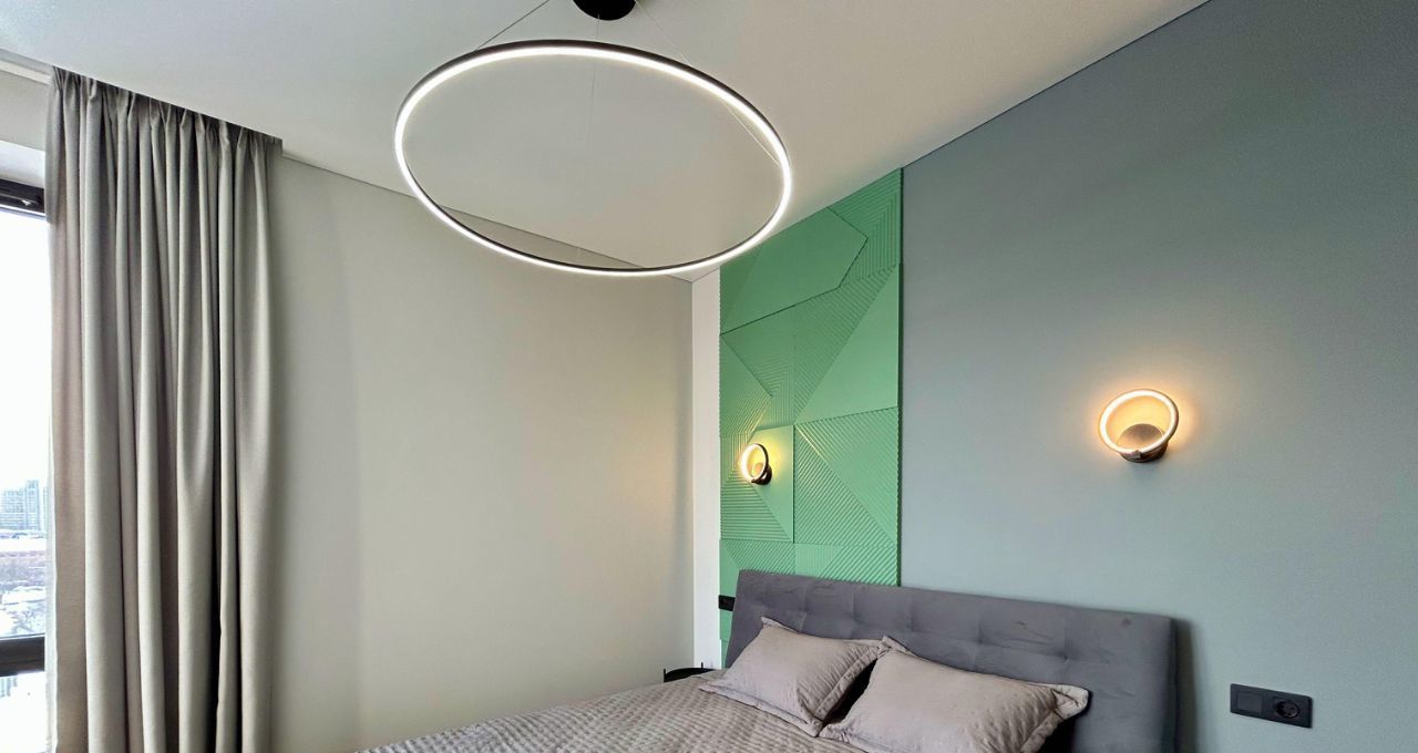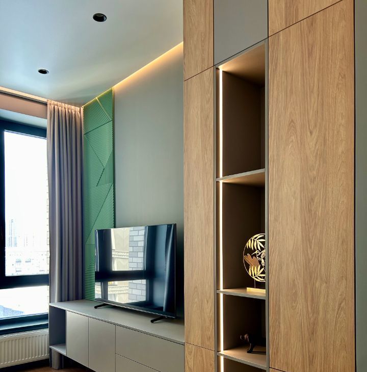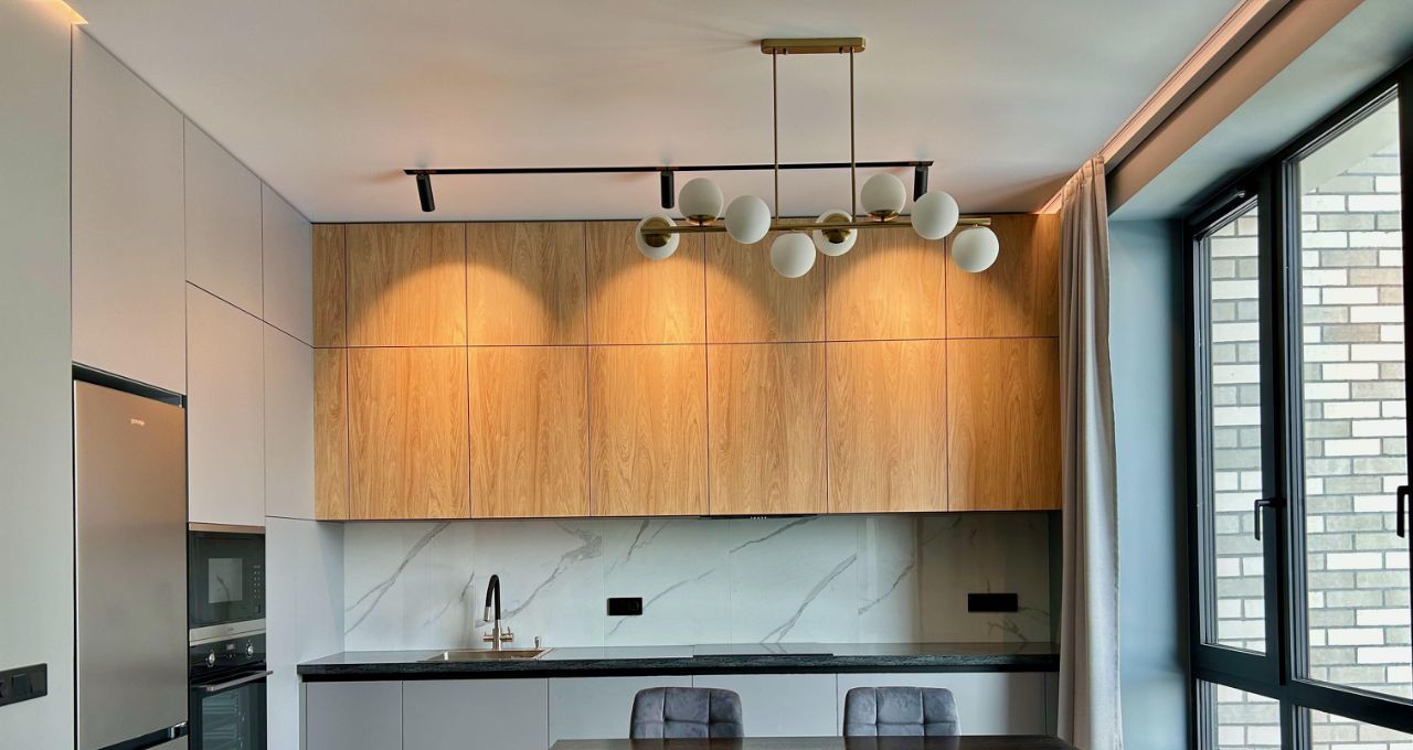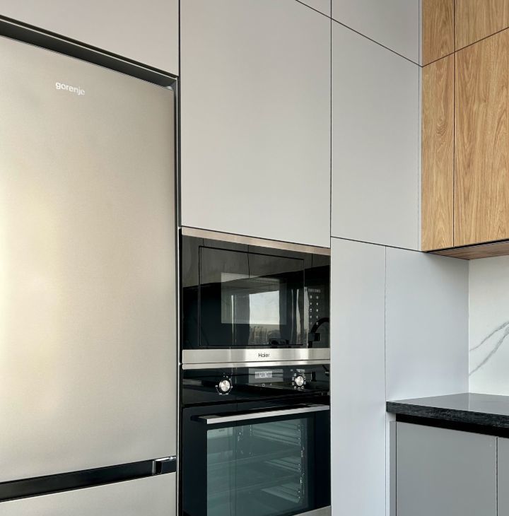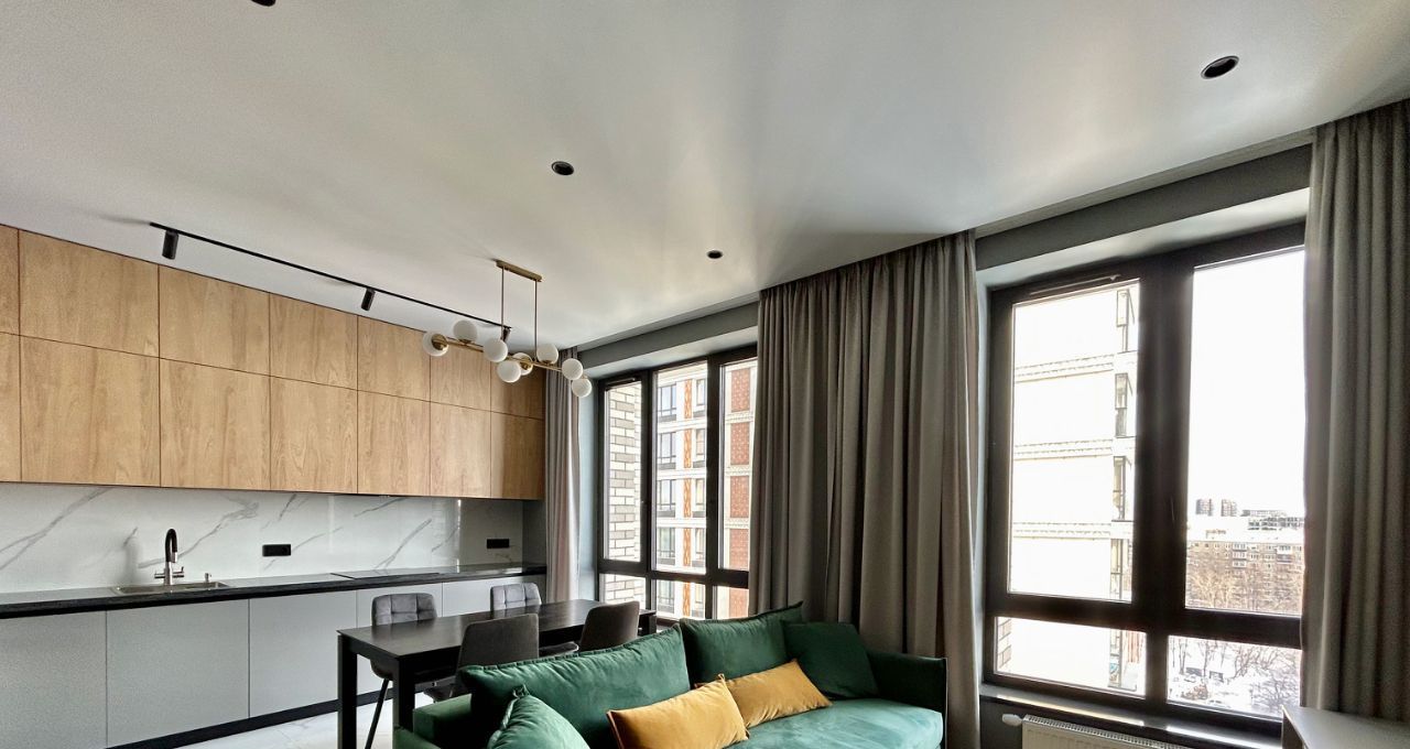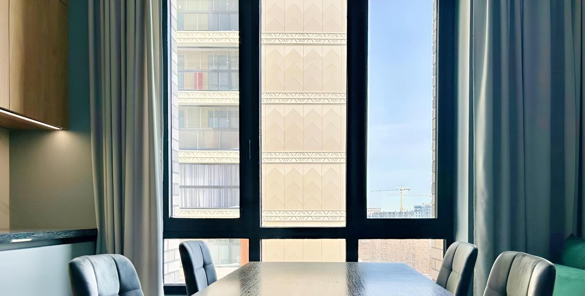 Квартира расположена на 14 этаже. В квартире выполнен современный ремонт, сдается впервые. Квартира очень светлая, окна выходят на юго-запад. В квартире есть все необходимое для комфортного проживания семьи их з-х человек: просторная кухня-гостиная с диваном, ТВ зоной, обеденной зоной, спальня с большой 2-х спальной кроватью, вторая спальня или кабинет с раскладным диваном и рабочей зоной, совмещенный санузел с ванной, дополнительный санузел, совмещенный с постирочной и кладовой, застекленная лоджия, встроенная мебель. Квартира полностью меблирована и оснащена всей необходимой современной техникой: ТВ 55, 2-х камерный холодильник, индукционная варочная панель, встроенные духовой шкаф, микроволновая печь и посудомоечная машина, стиральная машина, кондиционер (сплит-система) с блоками в каждой комнате.