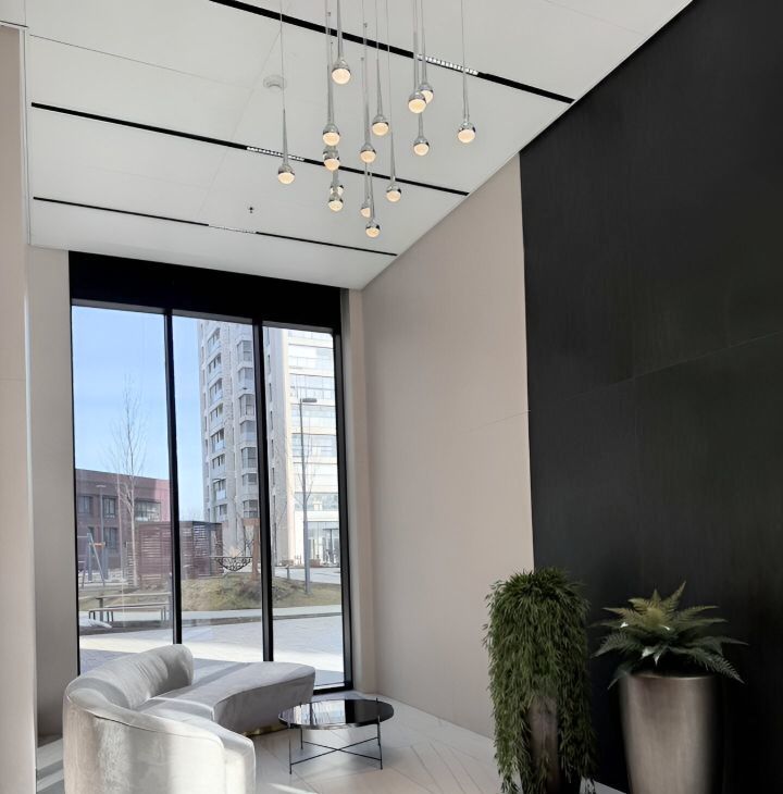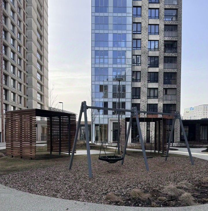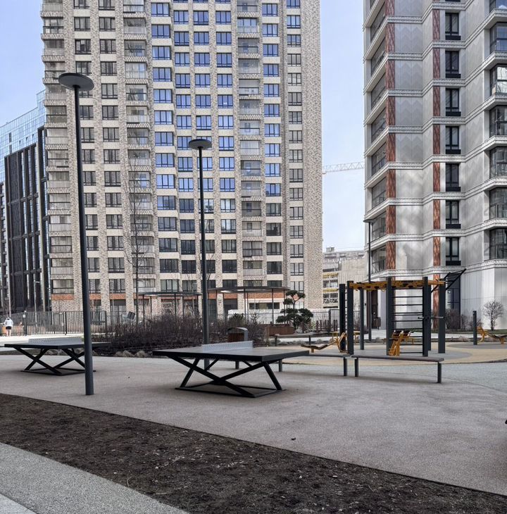 Дом оснащен двумя пассажирскими и двумя грузовыми лифтами, что обеспечивает удобство перемещения. На территории комплекса есть спортивная зона.