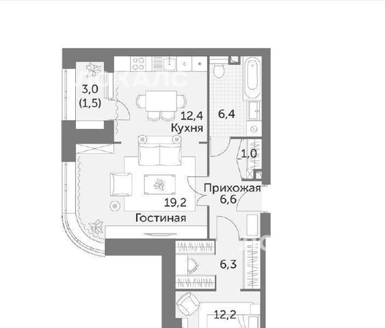 Планировка включает в себя 2 комнаты, кухню, тёплую лоджию, прихожую, постирочную, гардеробную, с/у.
