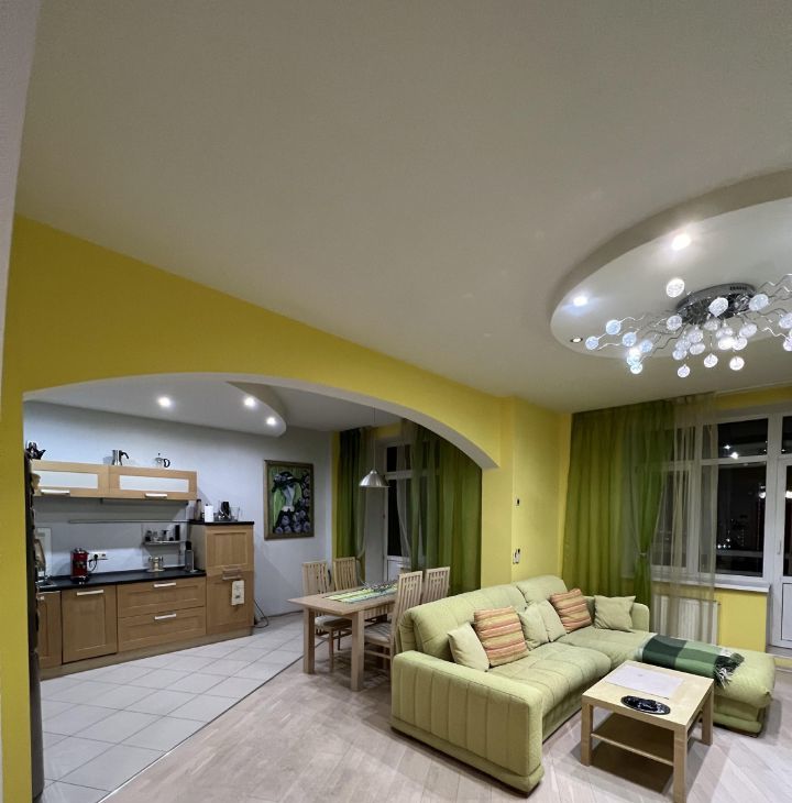 Сдается в аренду просторная двухкомнатная квартира в современном монолитном доме ЖК Поселок художников. Общая площадь квартиры составляет 89,2 кв. м, жилая площадь — 55 кв. м, площадь кухни — 16 кв. м. Квартира расположена на 21 этаже из 30, а высота потолков достигает 3 метров, благодаря чему в помещениях создается ощущение простора. Окна выходят на улицу, открывая вид на город.