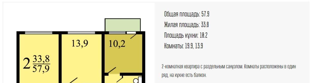 2-к кв. Москва ул. Яблочкова, 49 (60.0 м²)