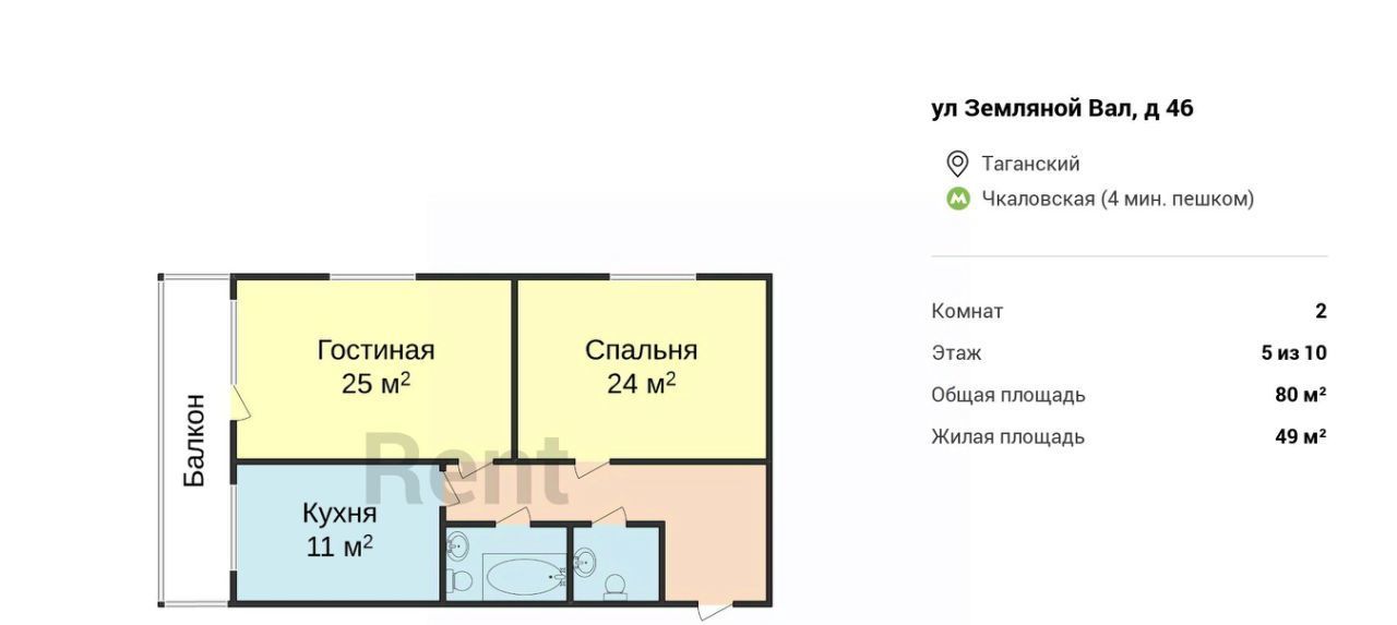 2-к кв. Москва ул. Земляной Вал, 46 (80.0 м²)