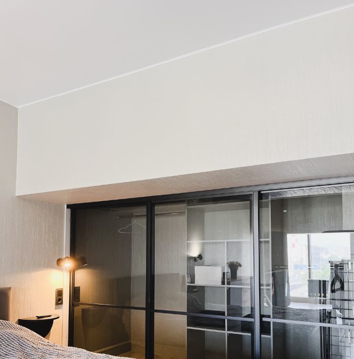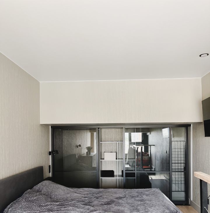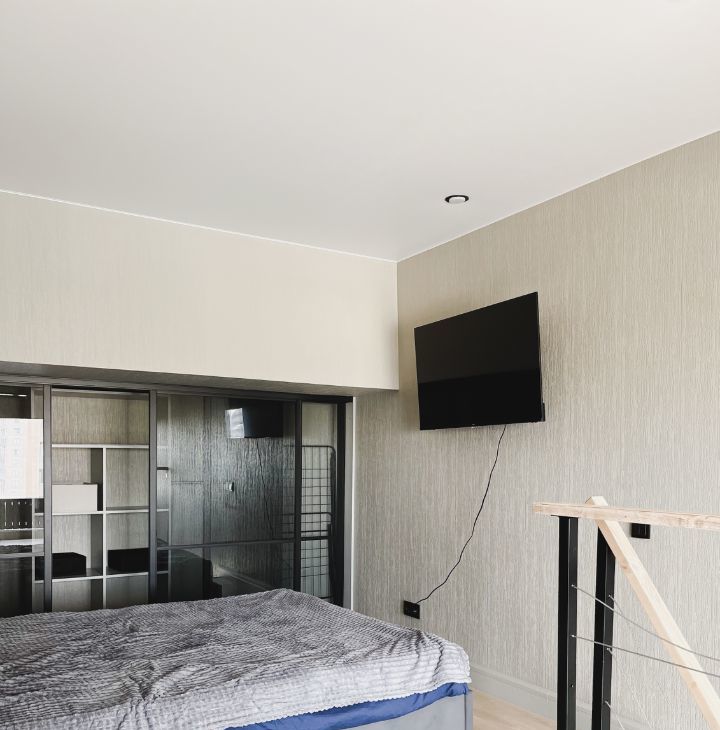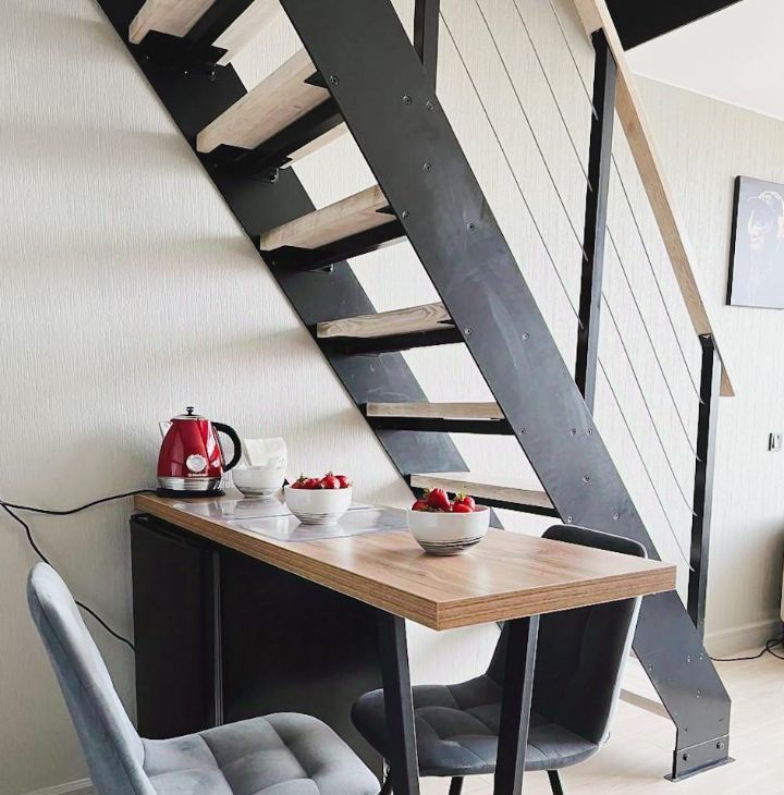 Двухэтажный апартамент с высокими потолками и большим пространством для хранения вещей.