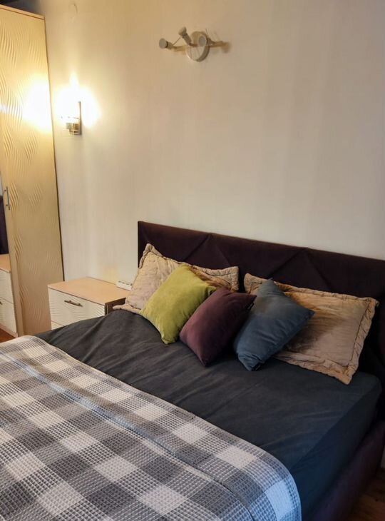 В квартире есть все необходимое: кондиционер, телевизор, пылесос, паровая швабра, гладильная доска, сушилка для белья, утюг, посуда для приготовления пищи и сервировки стола, одеяла, подушки и прочие нужные для быта вещи. Можно заехать и сразу жить с комфортом. Интернет. Заезд во двор через шлагбаум по приложению.