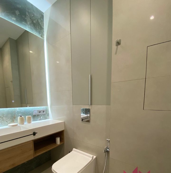 Квартира полностью укомплектована для комфортного заселения: здесь есть вся необходимая техника, включая кондиционер, стиральную машину и телевизор, а также современная мебель в комнатах и кухне. Особого внимания заслуживает планировка: изолированные комнаты гарантируют приватность, а просторная кухня-гостиная становится естественным центром притяжения для семьи или приема гостей. Совмещенный санузел с ванной выполнен с отделкой высокого уровня.