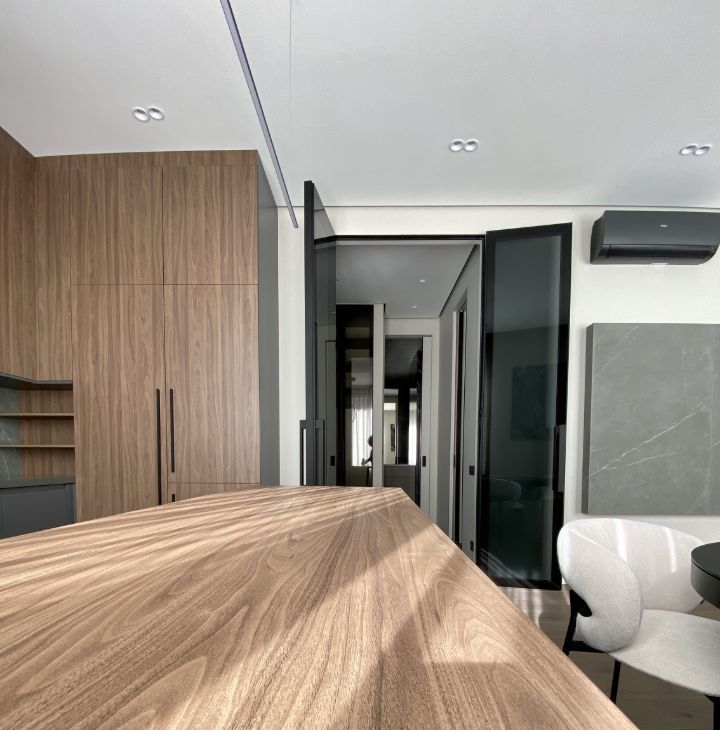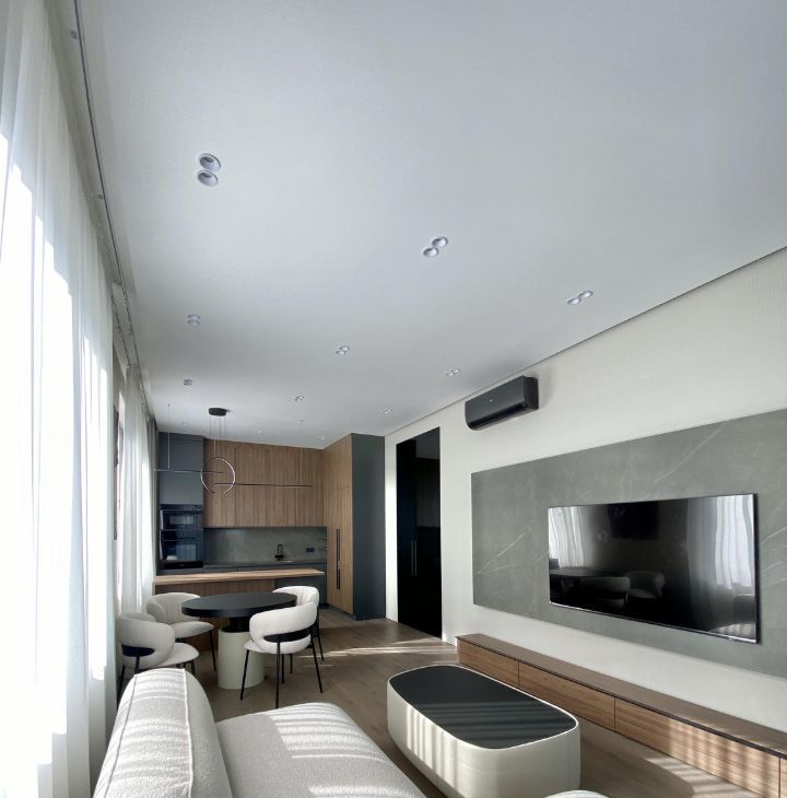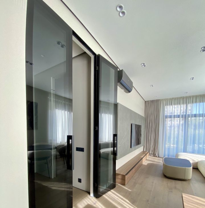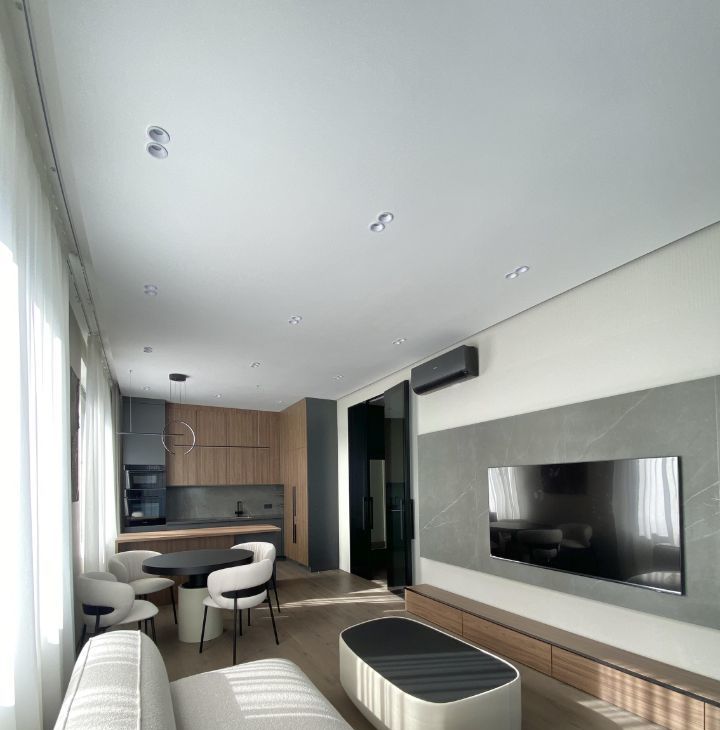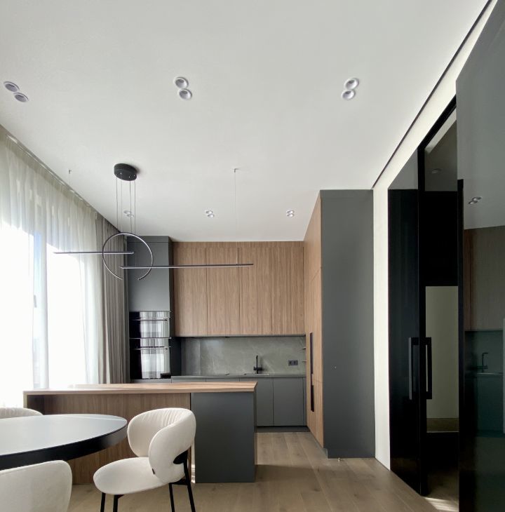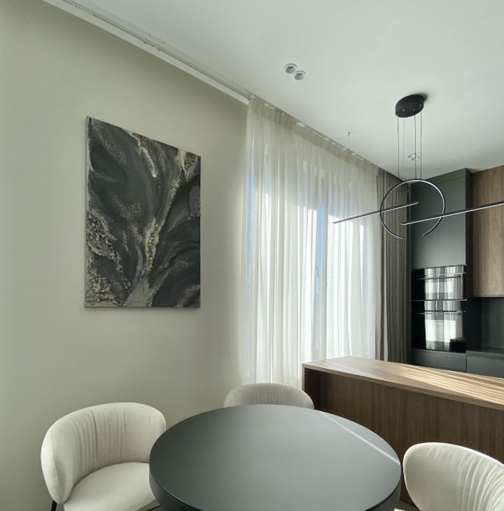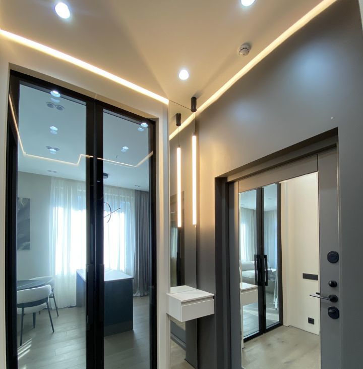 квартира новая после ремонта с доп функцией шумоизоляции, в квартире очень тихо, цикл ремонтов окончен, отдельная спальная комната с рабочей зоной, гардеробная, зон хранения много, кухня полного цикла, вся метель/техника/ремонт в сроках гарантийного обслуживания., многоуровневое каскадное освещение от теплого к холодному., авто места в паркинге имеются у соседей в аренде, прекрасные соседи.,
