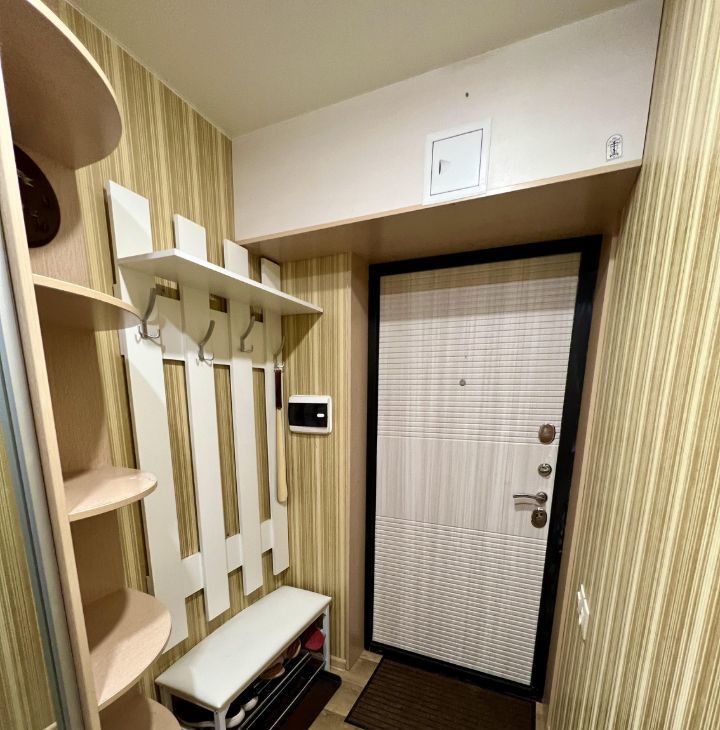 Полностью укомплектована мебелью (кровать с новым матрасом, новый диван, 2 стенки, большой распашной шкаф в комнате, зеркальный шкаф-купе в прихожей, шкаф в ванной, комод, тумбочка, полки, этажерка) и