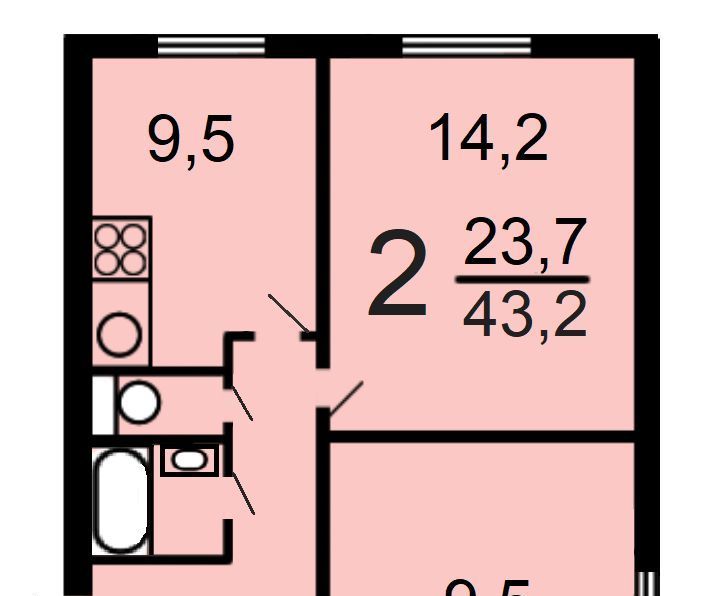 Сдается просторная, светлая и уютная 2 (двух) комнатная квартира с хорошим ремонтом (евро), на окнах стеклопакеты. Общая площадь 43,2 кв.м, кухня 9,5 кв.м, изолированные комнаты (14,2 кв.м и 9.5 кв.м) на 1 этаже 9 этажного дома с окнами во двор. Холл (тамбур).