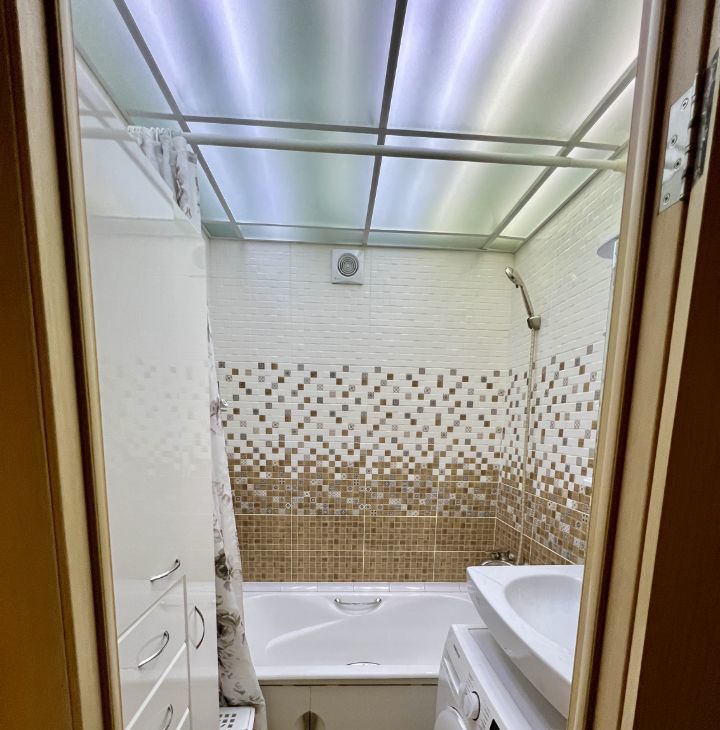 ванной. Пол ламинат и плитка.