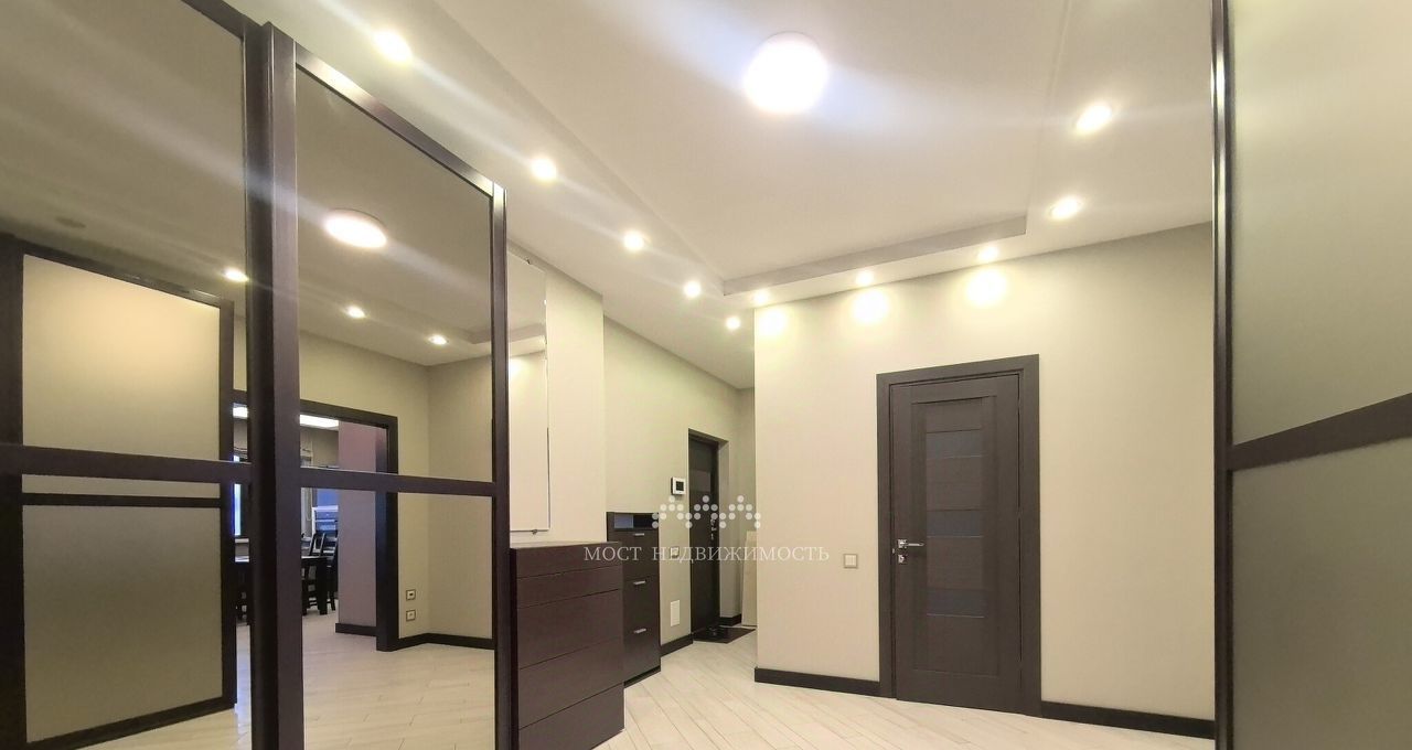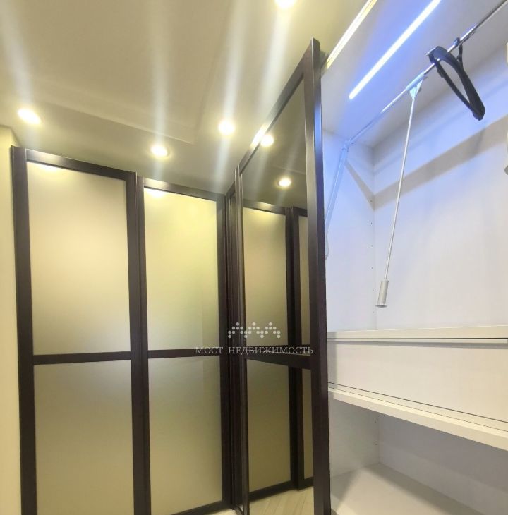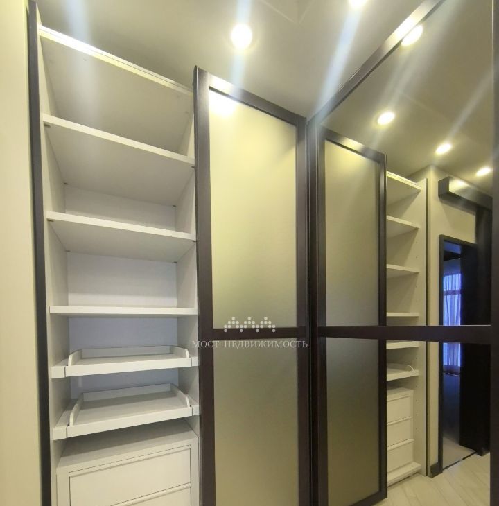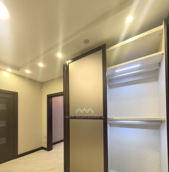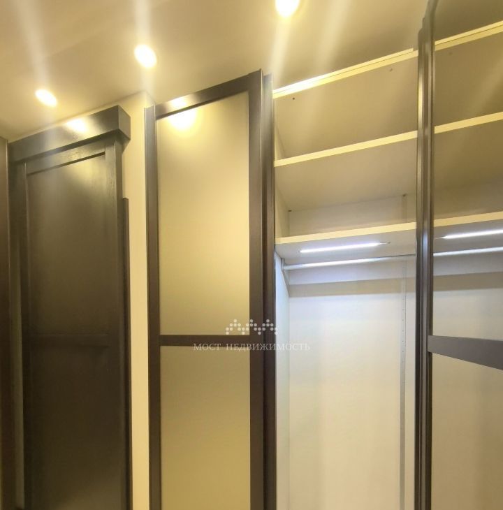 В коридоре установлены очень вместительные встроенные шкафы с внутренней подсветкой.