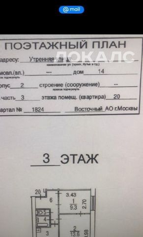 2-к кв. Москва Утренняя ул., 14К2 (38.1 м²)
