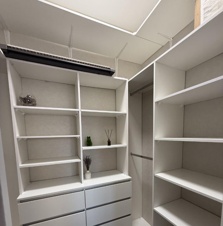 В квартире выполнен качественный свежий ремонт, ранее не сдавалась. Предусмотрено много мест для хранение: гардеробная, большой шкаф, комоды, кровать с подъемным механизмом.