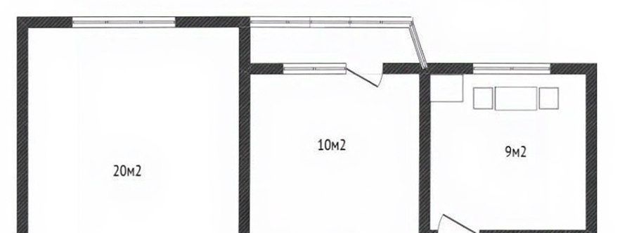 2 изолированные комнаты (20 кв.м и 10 кв.м). Просторная кухня 9 кв.м.
