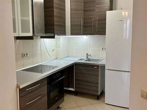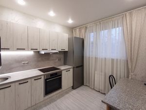 В квартире имеется вся необходимая техника, кухонный гарнитур, обеденная зона,