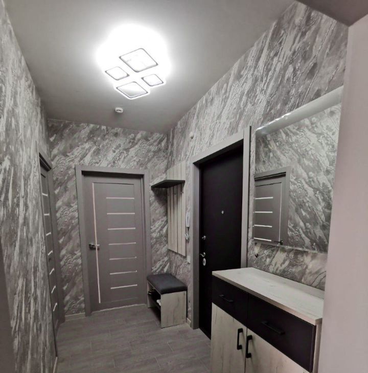 Квартира с евроремонтом, полностью готова к проживанию. В кухне и комнатах есть вся необходимая мебель для комфортной жизни. Кухня оборудована большим холодильником, плитой, духовым шкафом, микроволновой, электрическим чайником и встроенным фильтром для воды. Так же оборудована обеденная зона: раскладной стол и 4 мягких стула. Ванная комната оборудована ванной с тропическим душем, стиральной машинкой, большим зеркалом с подсветкой и полочками, тумбой. В спальне стоит большая кровать с ортопедическим матрасом и большой шкаф, кондиционер. В большой комнате раскладной диван с блоком независимых пружин, стенка и телевизор, вместительный шкаф, кондиционер. В прихожей так же есть всё необходимое: полочка с крючками, банкетка, большое зеркало, комод.