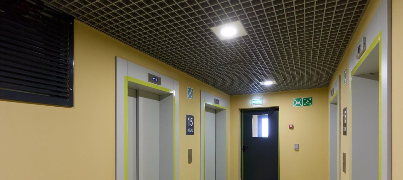 Дом оснащен двумя пассажирскими и двумя грузовыми лифтами, поэтому можно без проблем подниматься на верхний этаж. Просторный подьезд, который включает: колясочную, помещение для консьержа. Парковка наземная, также имеется подземный паркинг за доп плату, что удобно для владельцев автомобилей.