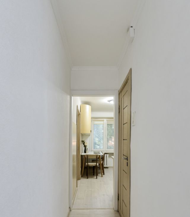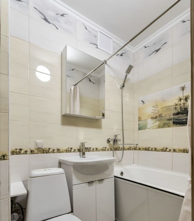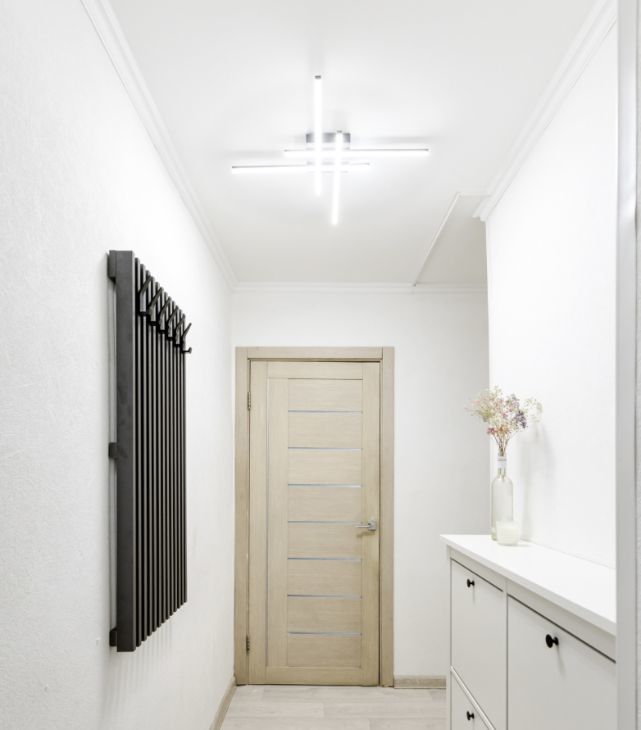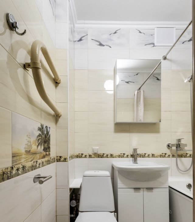 светлая прихожая и совмещённый санузел.