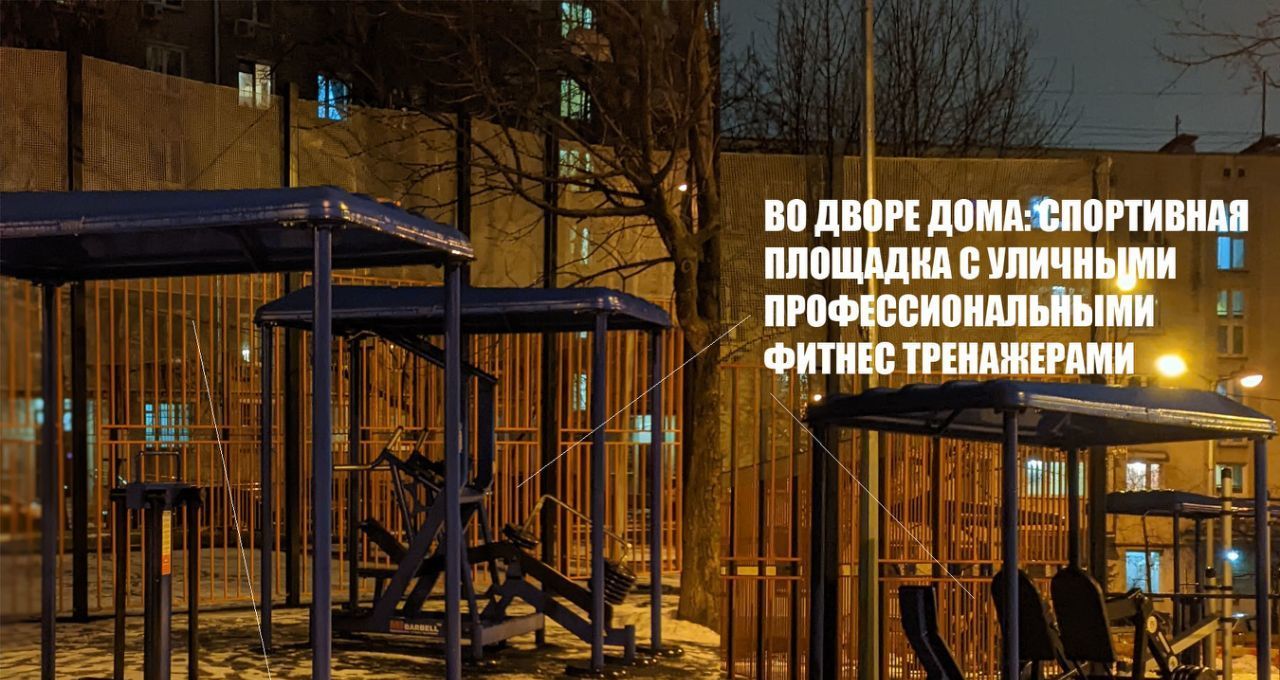ВО ДВОРЕ: СПОРТ площадка с уличными ПРОФЕССИОНАЛЬНЫМИ ФИТНЕС ТРЕНАЖЕРАМИ (удобно, нет трат на фитнес клуб), дет площадка, баскетбол площадка. Парковка за шлагбаумом.
