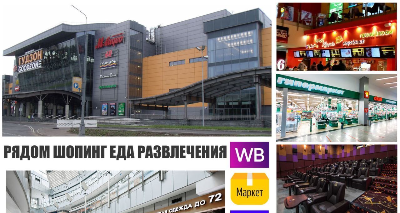 РЯДОМ - ШОППИНГ, ЕДА, КИНО, РАЗВЛЕЧЕНИЯ: Торгово-Развлекательный Центр ГУДЗОН, Продуктовый ГиперМаркет ОКЕЙ, ПРОДУКТОВЫЕ и магазины для ДОМА, ПВЗ Валберис, ОЗОН, СберМегаМаркет