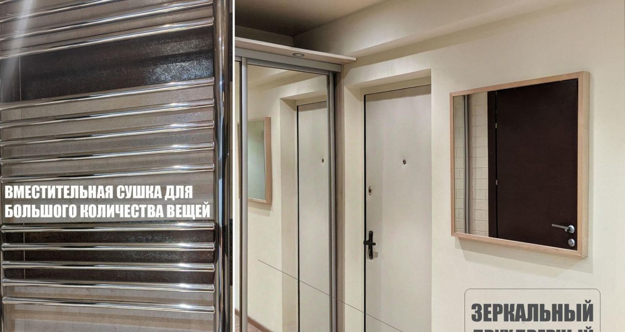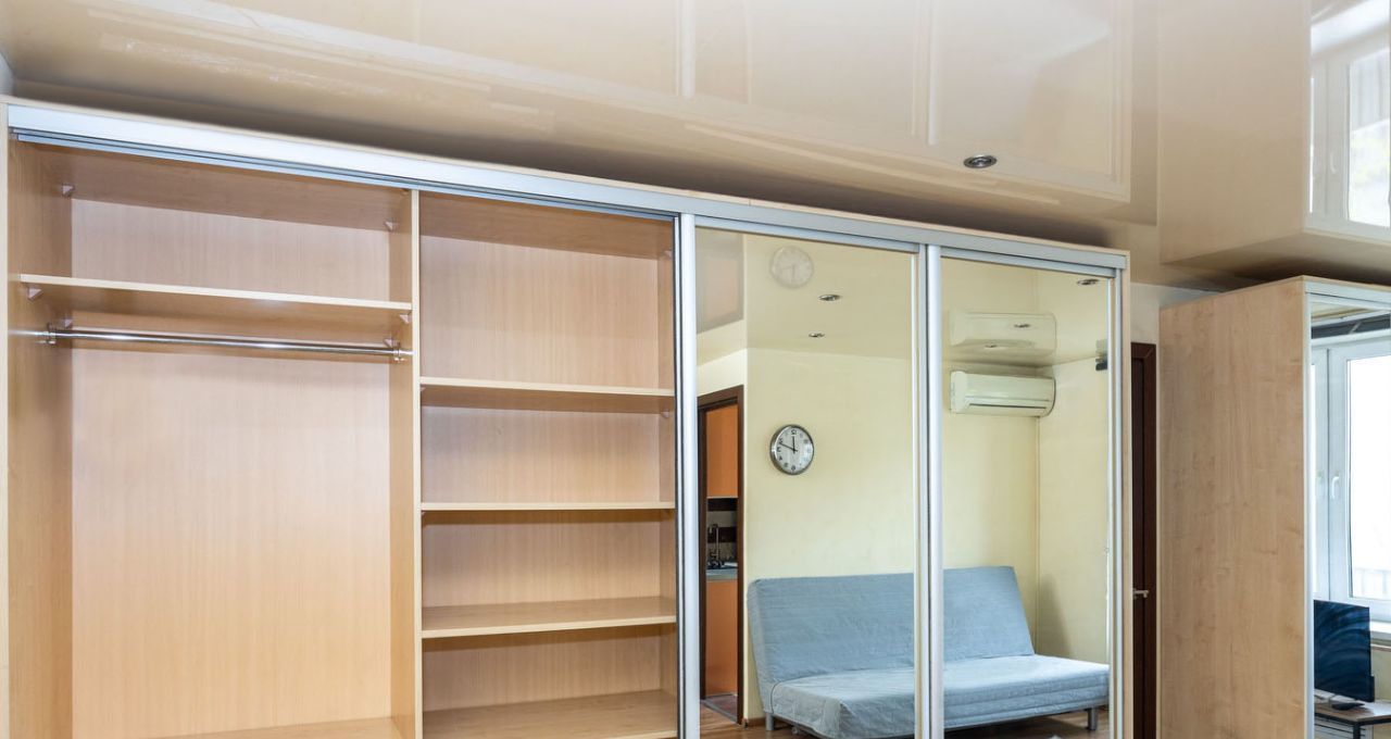Квартира оборудована удобной системой хранения - большим, зеркальным гардеробом в гостиной и прихожей во всю стену.