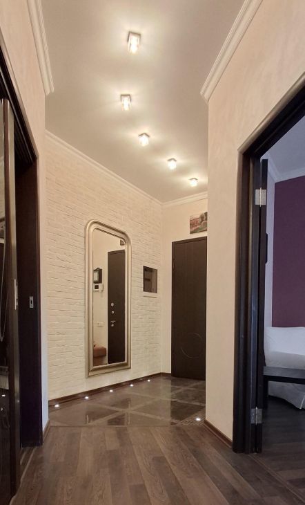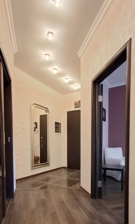В квартире сделан дизайнерский ремонт, что придаёт ей особый стиль и уют. В просторной ванной комнате есть ванна, душевая кабина, поэтому можно выбирать, как лучше расслабиться после долгого дня. Квартира полностью меблирована: есть мебель на кухне и в комнате. Из техники в вашем распоряжении: кондиционеры в каждом помещении, холодильник, посудомоечная машина, телевизор и стиральная машина. Подключён интернет, поэтому можно оставаться на связи и работать из дома, если это необходимо.