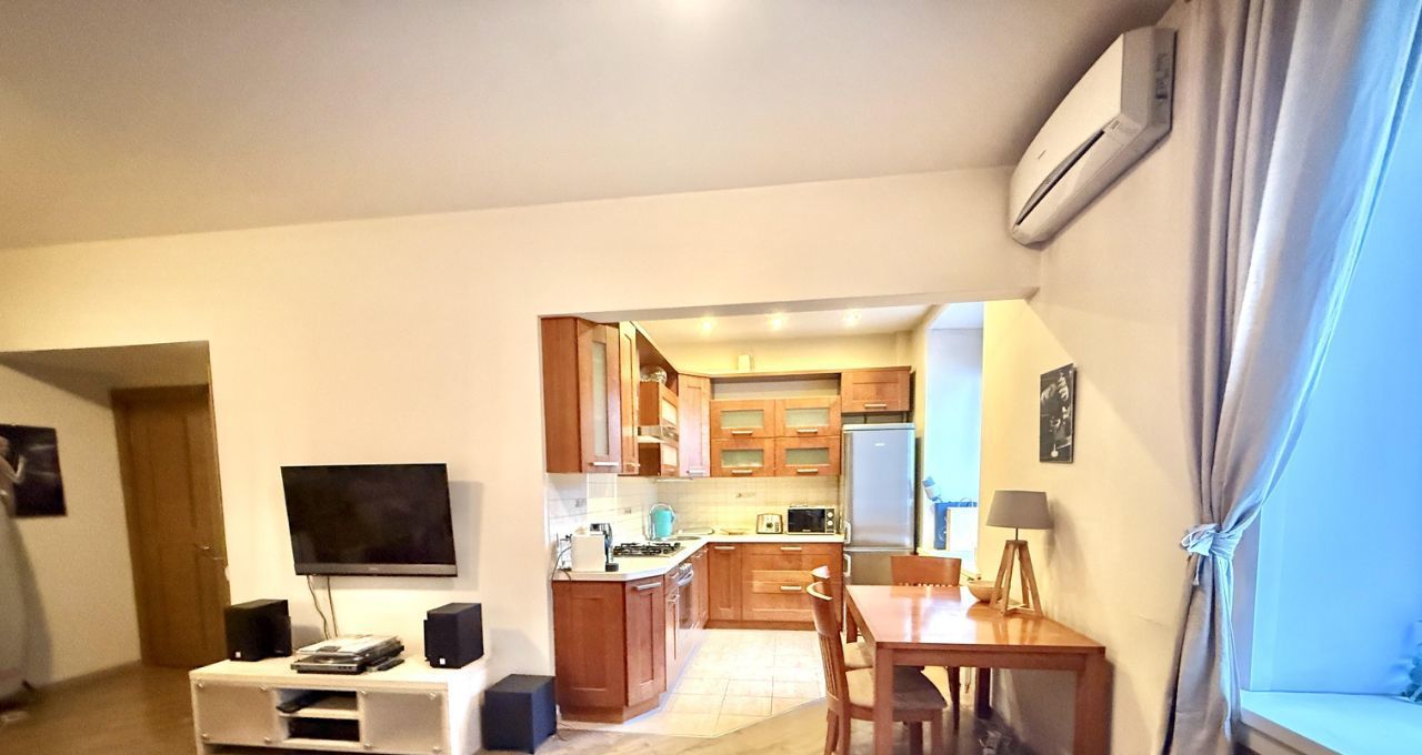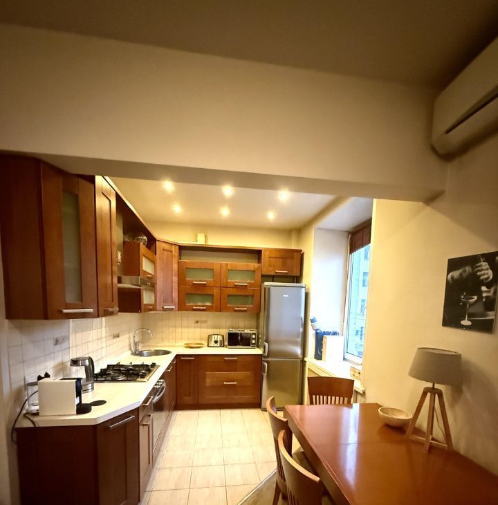 В квартире имеется все необходимое для комфортного проживания: стиральная и посудомоечная машины, газовая плита, духовой шкаф, кондиционер, водонагреватель, телевизор, домашний кинотеатр, интернет. Высота потолков 3м. Окна выходят в зеленый и тихий двор.