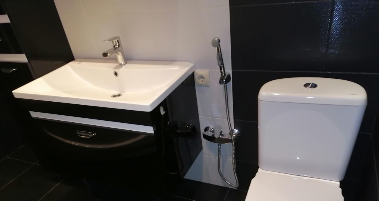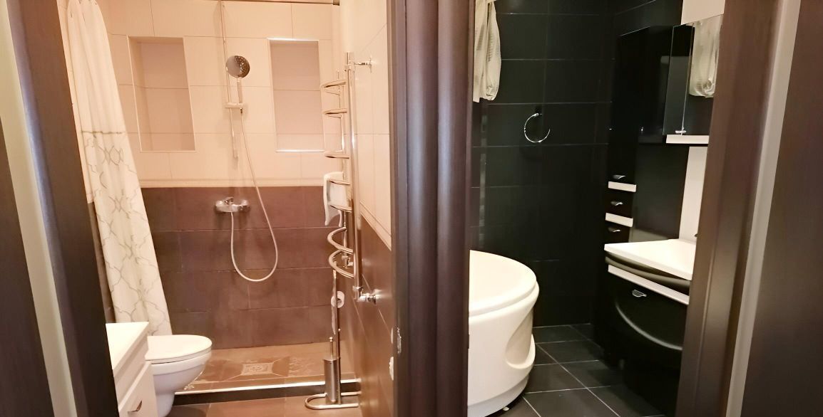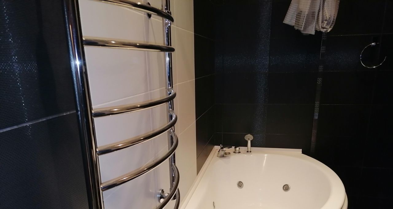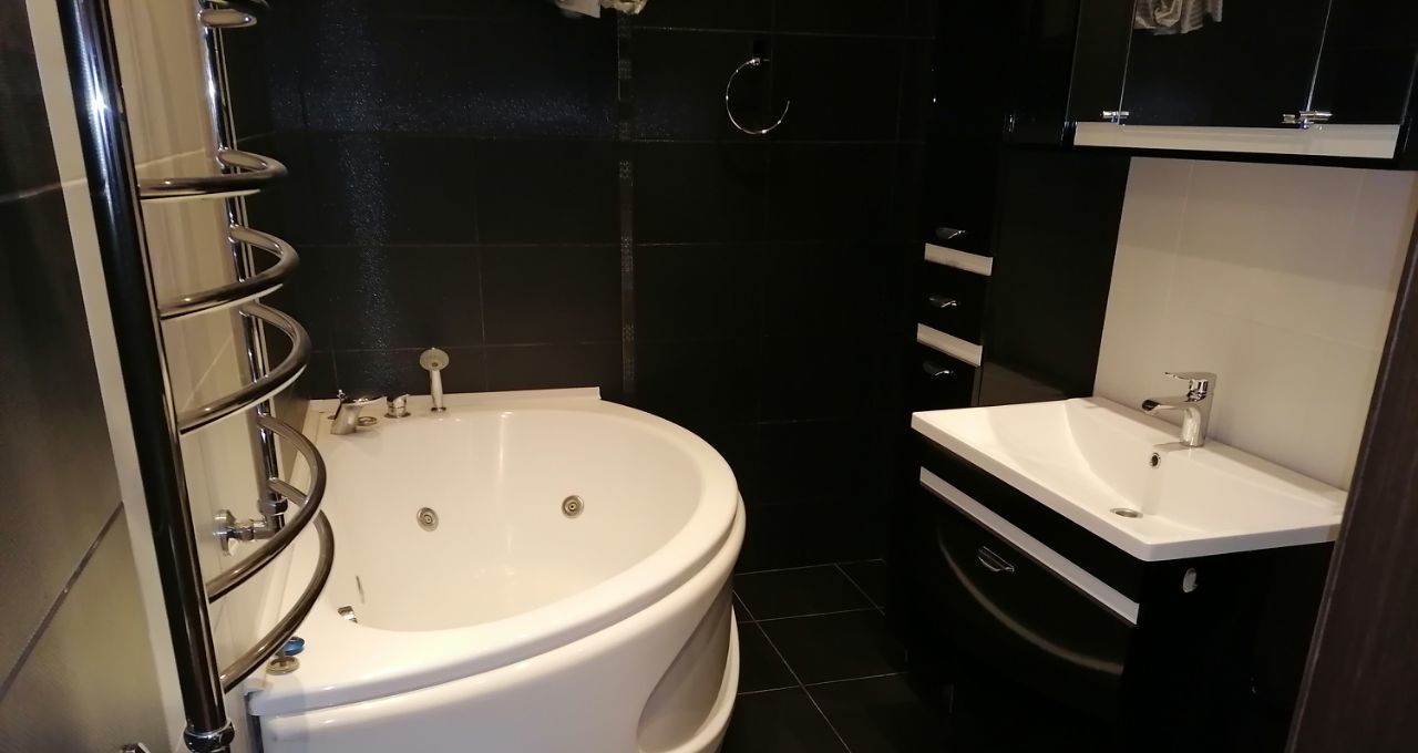 В квартире сделан евроремонт, установлена современная мебель как на кухне, так и в комнатах. Из техники есть все необходимое для комфортного проживания: кондиционер, холодильник, посудомоечная машина, телевизор, стиральная машина. Два совмещенных санузла оборудованы душевой кабиной и ванной, что очень удобно для семейного проживания. Окна выходят на улицу, поэтому в квартире всегда светло.