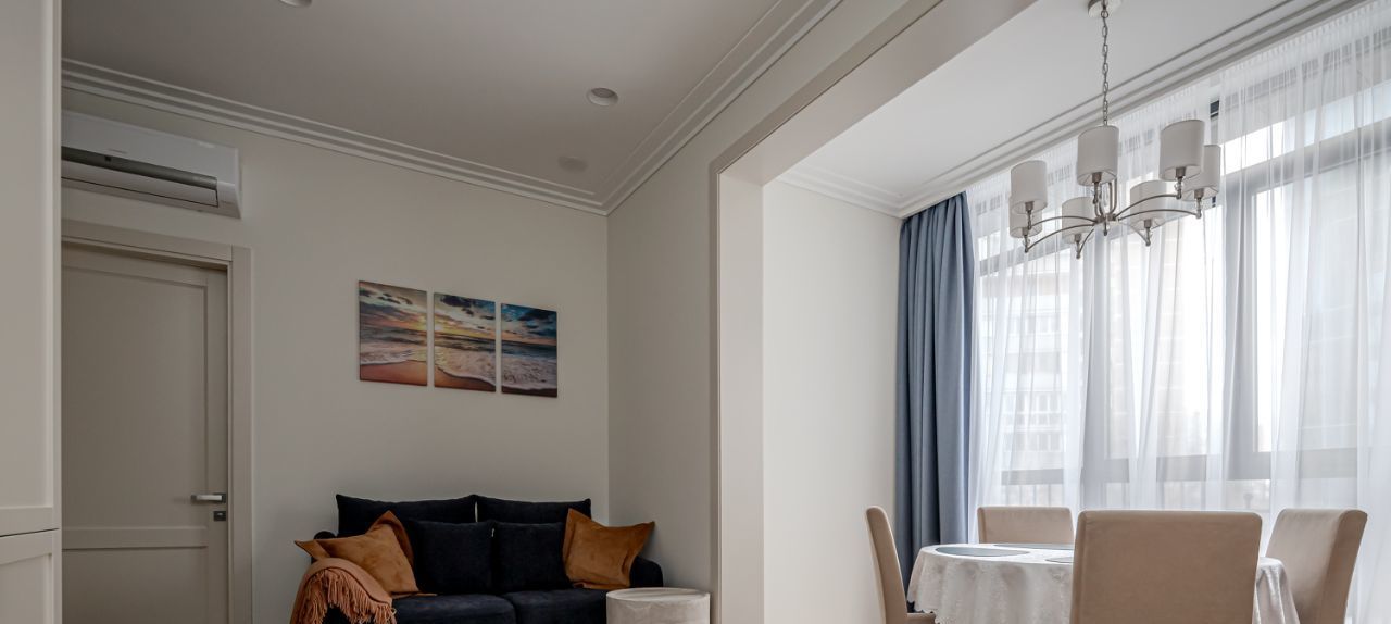 Квартира в аренду в ЖК ''Оливковый дом'': ваш уголок уюта и комфорта. Сдаётся в аренду двухкомнатная, шикарная квартира с дизайнерским ремонтом площадью 55 кв. м на 2 этаже 9-этажного кирпичного дома, построенного в 2019 году. Высокие потолки 3.2 метра создают ощущение простора. Дом расположен в 9 минутах пешком от метро Белорусская, что делает его идеальным вариантом для тех, кто ценит удобство и доступность.