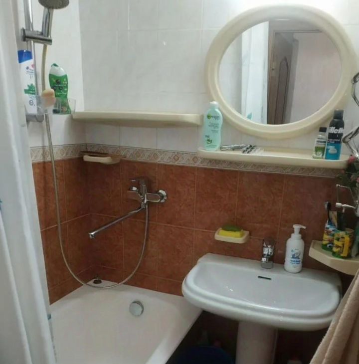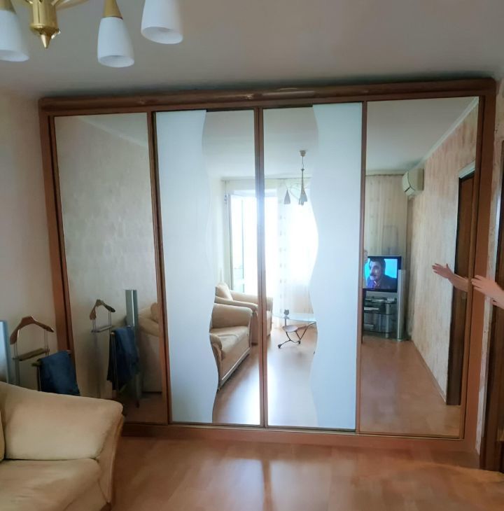 Балкон застеклён, стеклопакеты, ламинат, кондиционер. Шкаф-купе с зеркалом, диван, кресло, ТВ, компьютерный стол, диван, встроенный кухонный гарнитур, СВЧ, холодильник, стиральная машина, санузел в плитке.