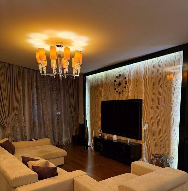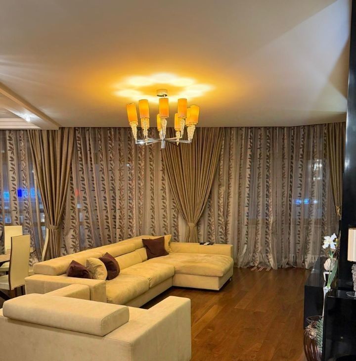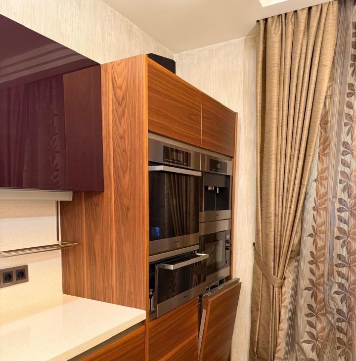 Квартира с дизайнерским ремонтом и стильной обстановкой. В комнатах , в кухне- гостиной и санузлах есть мебель, которая позволит вам сразу же ощутить комфорт и уют. Для вашего удобства установлена вся необходимая техника: кондиционеры, холодильник, посудомоечная машина, микроволновая печь, духовой шкаф , кофе машина, телевизоры, стиральная и сушильная машины. Три отдельных санузла, в которых есть или ванна или душевая кабина, они обеспечат удобство для всей семьи. Окна выходят как на улицу, так и во двор, поэтому в квартире всегда светло и тихо.