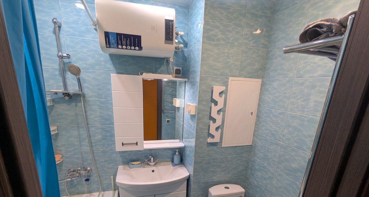 Ванная комната дополнительно оборудована бойлером на случай планового отключения горячей воды.