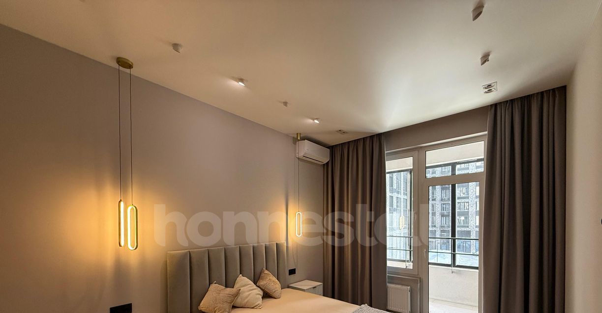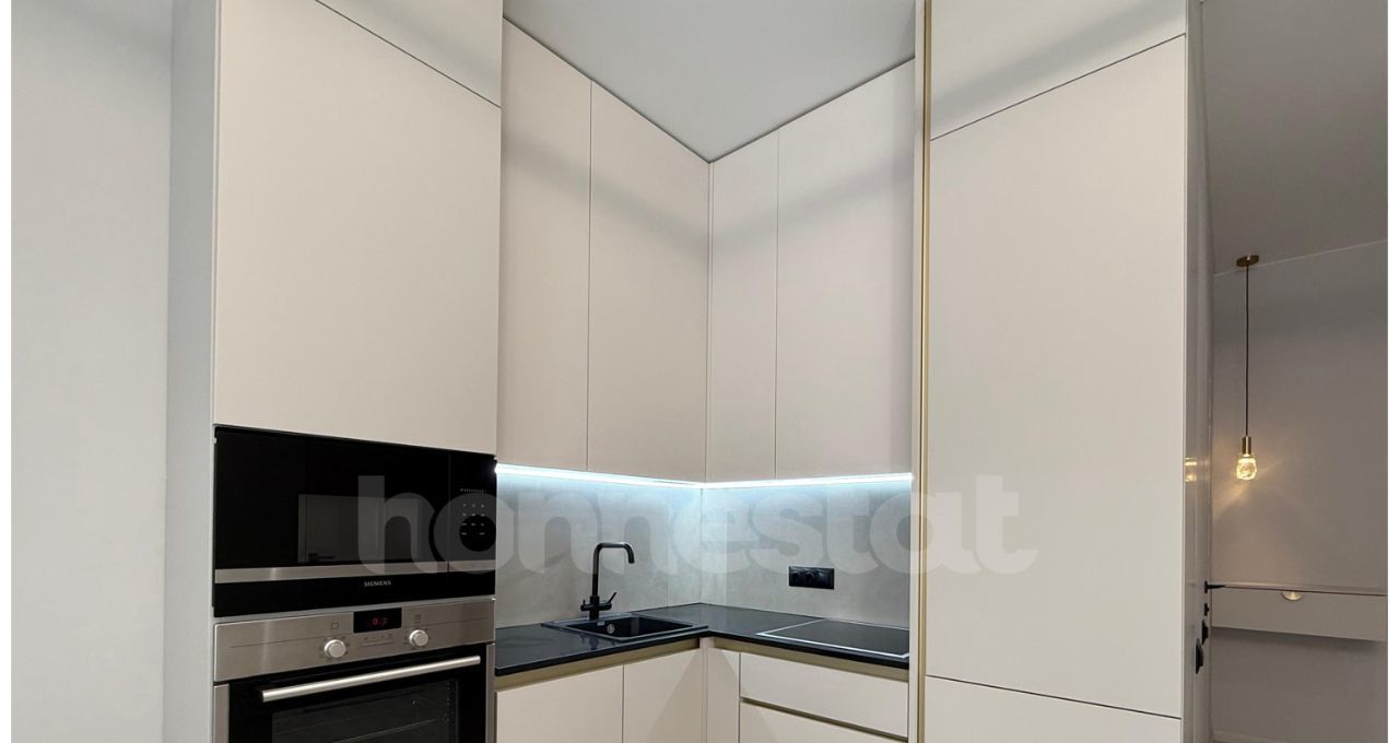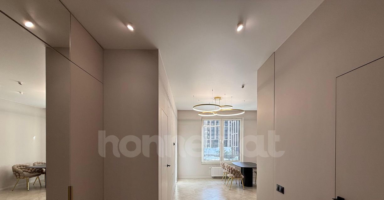 В квартире сделан дизайнерский ремонт, который подчеркивает её современный стиль. В каждой комнате есть мебель, просторная гардеробная, а кухня оборудована всей необходимой премиальной техникой Siemens, холодильник Liebherr, кондиционер, посудомоечная и стиральная машины. При необходимости поставим телевизор и диван на кухню. Удобная планировка и просторная ванная комната с ванной создают комфортные условия для проживания.