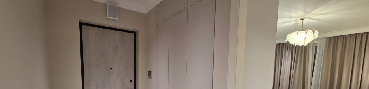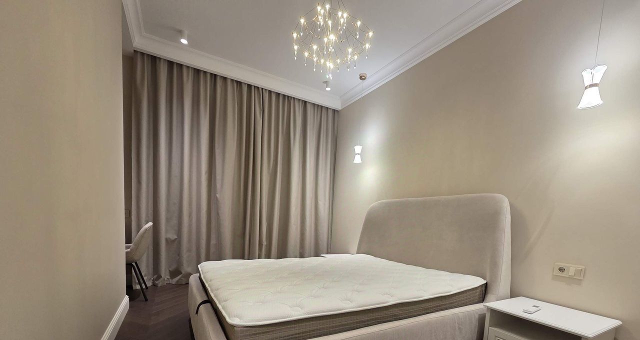 Квартира никогда ранее не сдавалась, выполнен современный качественный ремонт, укомплектована всей необходимой техникой и мебелью. Квартира евро-планировки (большая кухня гостиная и одна изолированная спальня с большой гардеробной)