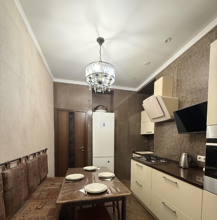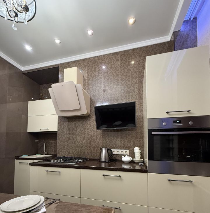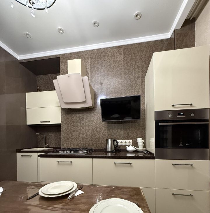 В квартире имеется вся необходимая техника для комфортного проживания: 2 телевизора, сушка для белья, стиральная машина; на кухне — холодильник, микроволновка, духовой шкаф, варочная панель, столовая посуда и приборы.