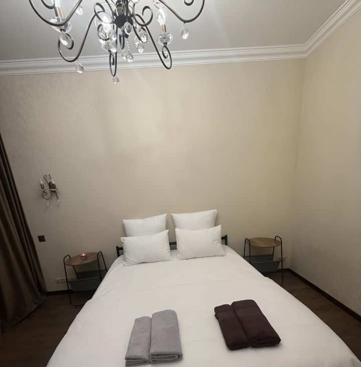 Санузел раздельный. В гостиной раскладной диван. В спальне двуспальная кровать с новым ортопедическим матрасом (высота 27 см.)