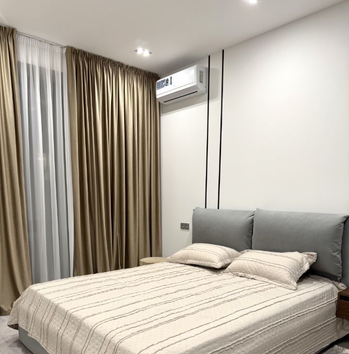Квартира оснащена всей необходимой мебелью и техникой: кровать с ортопедическим матрасом 180*200, посудомойка, кондиционер, водонагреватель, 2 TV, стиральная машина с сушкой, плита, микроволновка.
