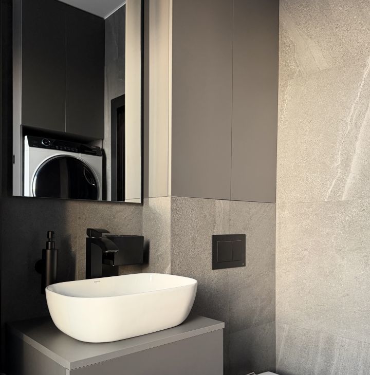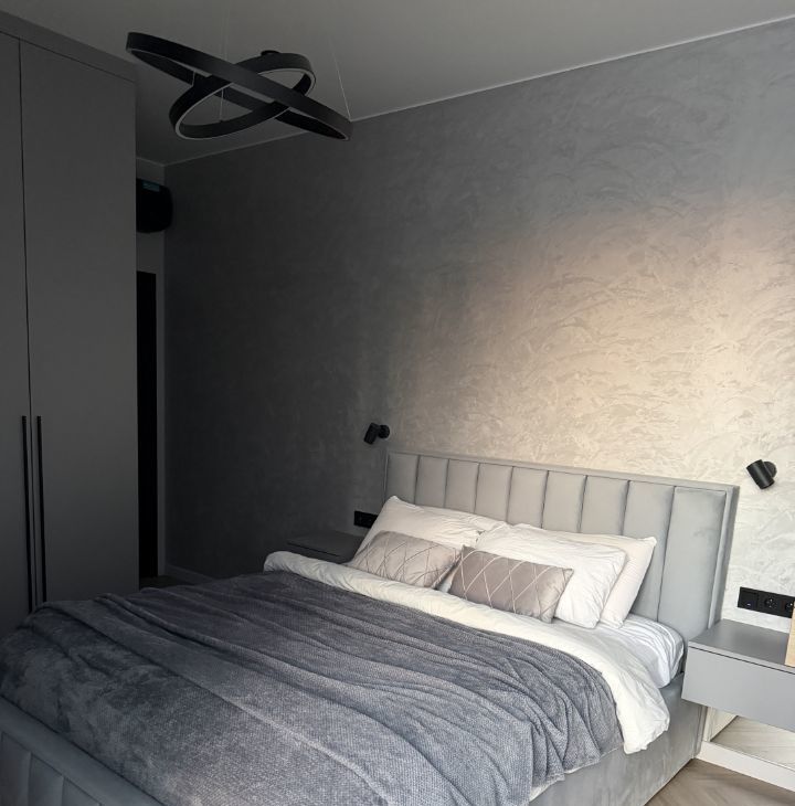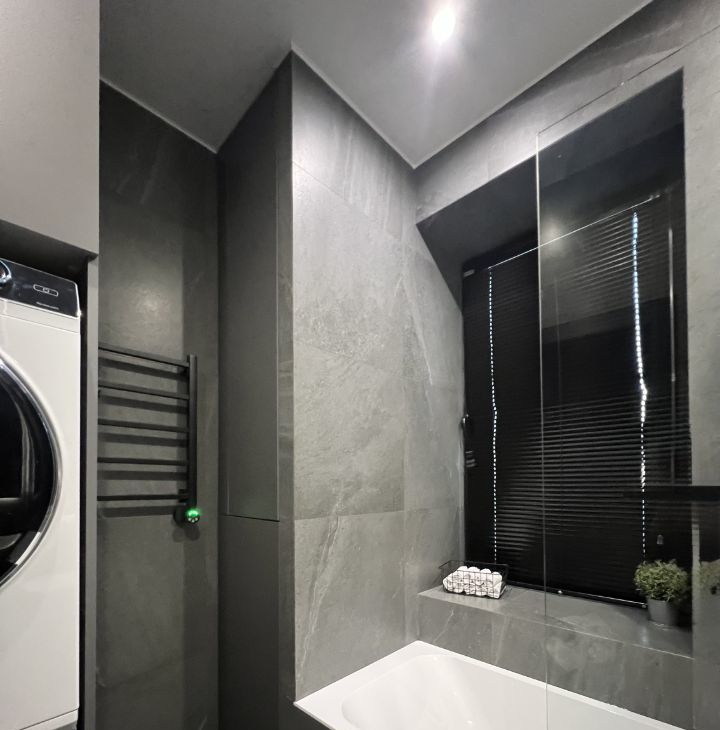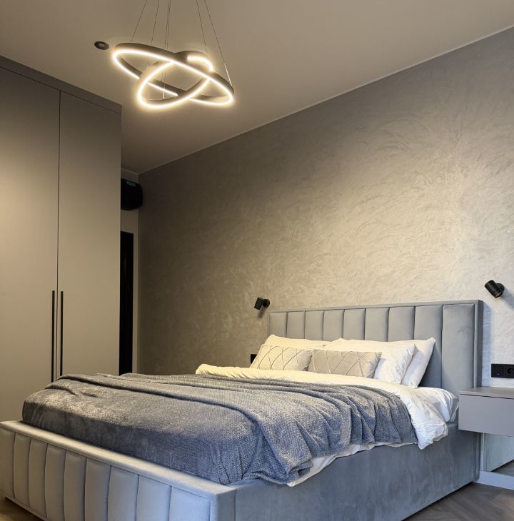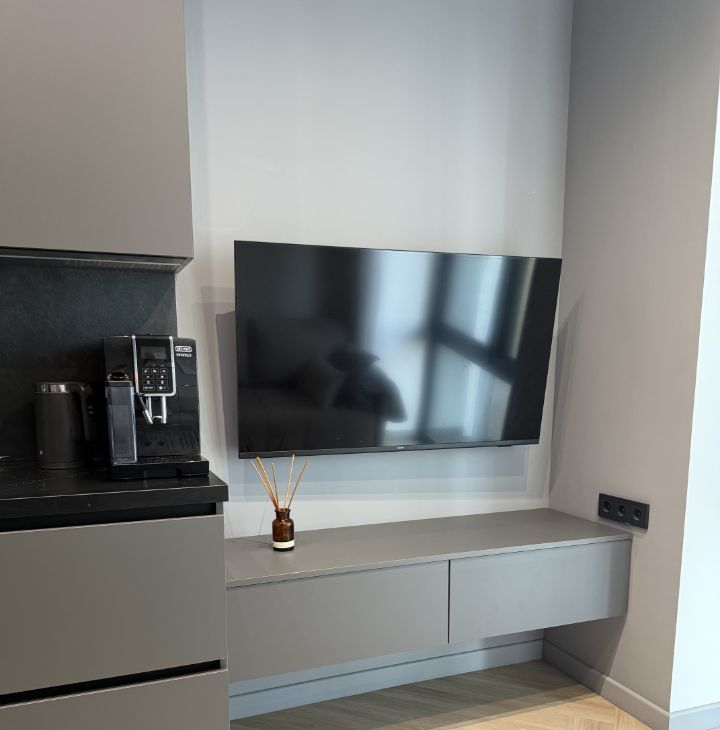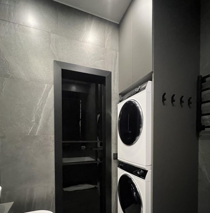 Кровать с подъемным механизмом, встроенные конвекторы европейского бренда Varmann, ванна из литьевого мрамора Salini, стиральная и сушильная машина Haier, индукционная варочная панель Bosch, микроволновая печь и духовой шкаф Bosch, посудомоечная машина Bosch, 2 телевизора Philips, кофемашина DeLonghi.