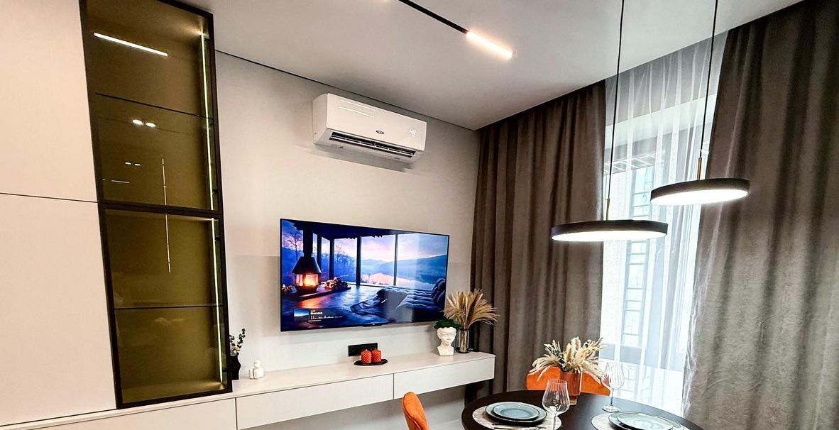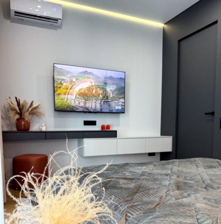 По комфорту- теплый пол, проточный водонагреватель, система от протечек воды, скрытый монтаж батарей! Пол - плитка и инженерная доска. Большая кухня-гостиная, вместительная гардеробная и шикарная, уютная спальня! В каждой комнате установлены кондиционеры, на кухне и спальне 50-дюймовые телевизоры с функцией смарт-ТВ 4k!