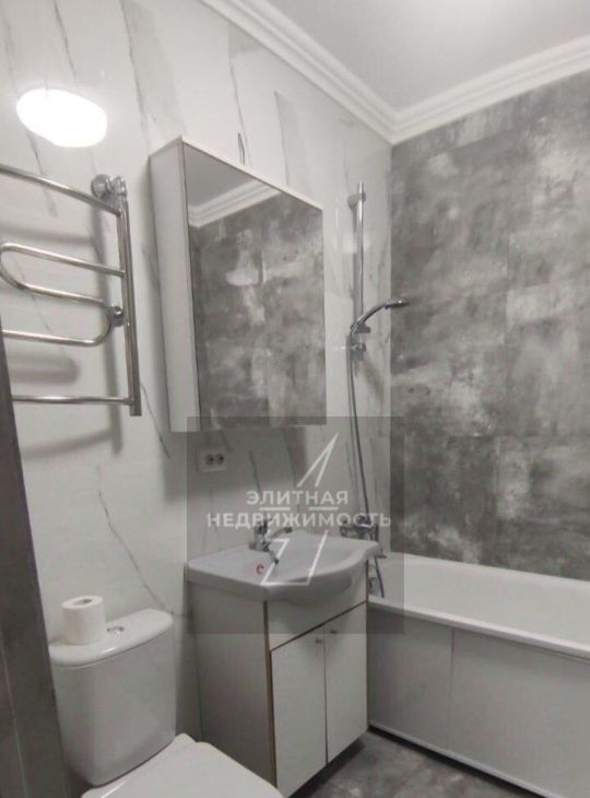 Отдельная спальня оснащена большой двуспальной кроватью и вместительным шкафом купе с зеркальными дверцами во всю высоту стены. Совмещенный санузел облицован плиткой под мрамор и бетон и укомплектован полноценной ванной зеркальным шкафом раковиной с тумбой и стиральной машиной. В квартире установлена качественная сантехника и продумано освещение в каждой функциональной зоне. Стоимость аренды составляет 90 тысяч рублей в месяц плюс оплата по счетчикам.