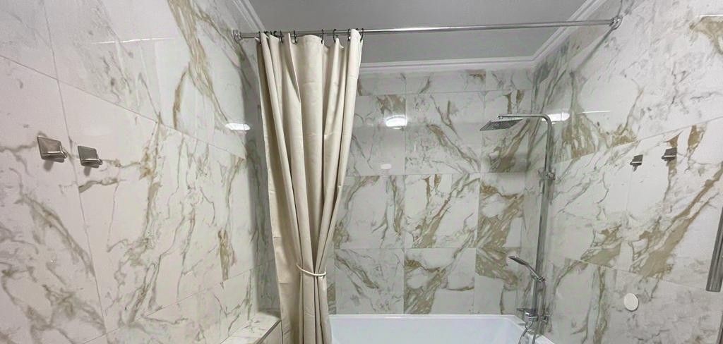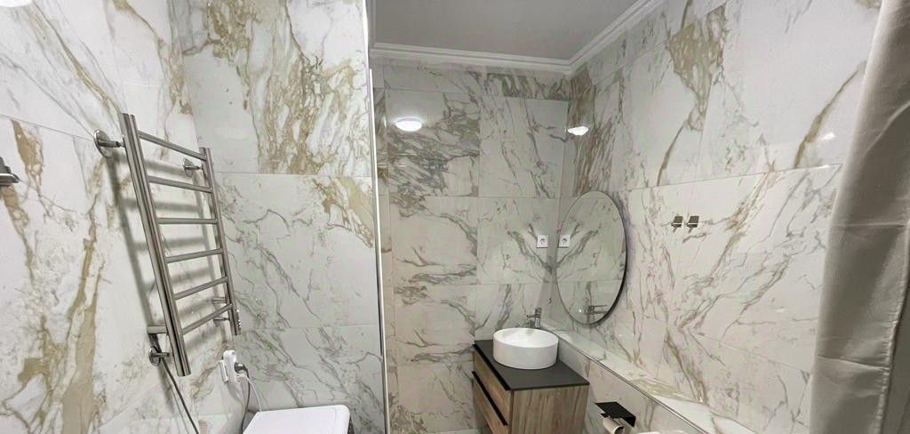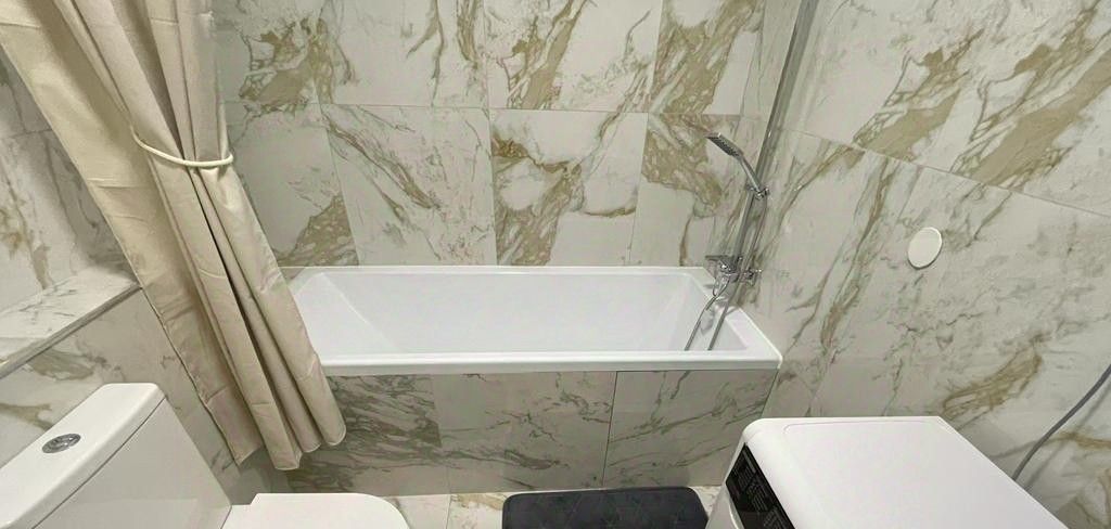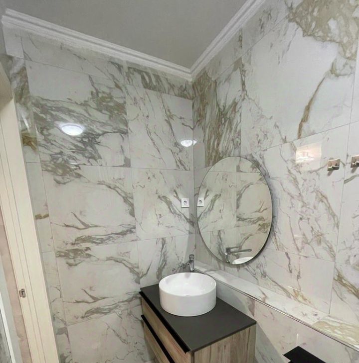 С/У совмещен. Отделка итальянской плиткой до потолка. Установлена качественная немецкая сантехника .Новая стиральная машина автомат .