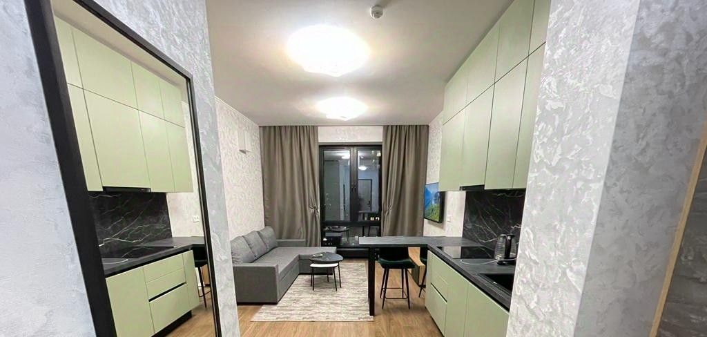 Комфортная , СОВРЕМЕННАЯ , стильная , уютная двухкомнатная квартира студийного плана . Капитальный ремонт с использованием качественных материалов . Панорамные окна в пол .